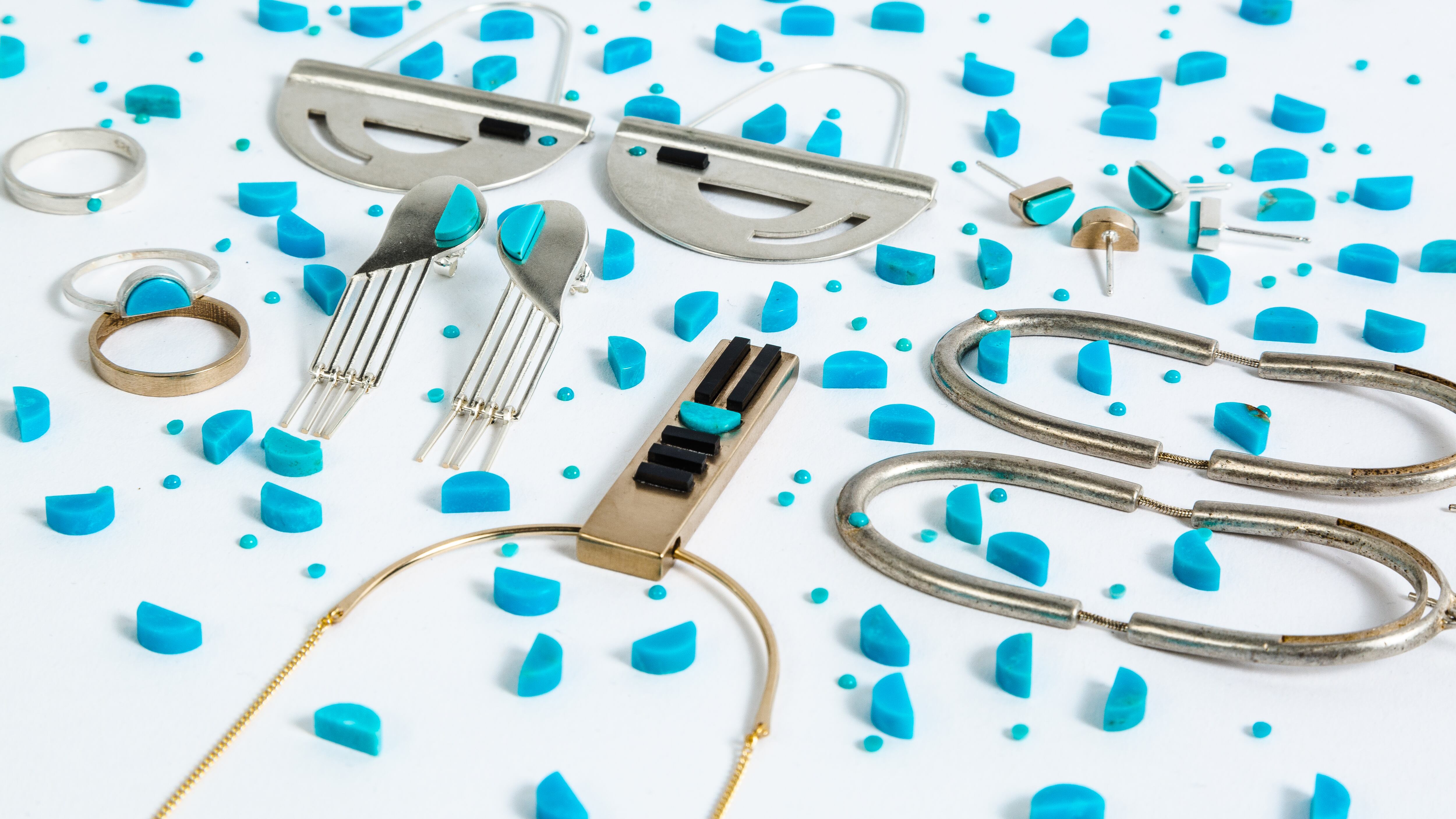 The new space for Betsy & Iya dazzles with a fresh display of high-end gems and a glamorous brass wall mirroring beautiful pieces made in-house. Bold in shapes and careful with color, this shop caters to the eco-conscious and those who want to support other local makers.