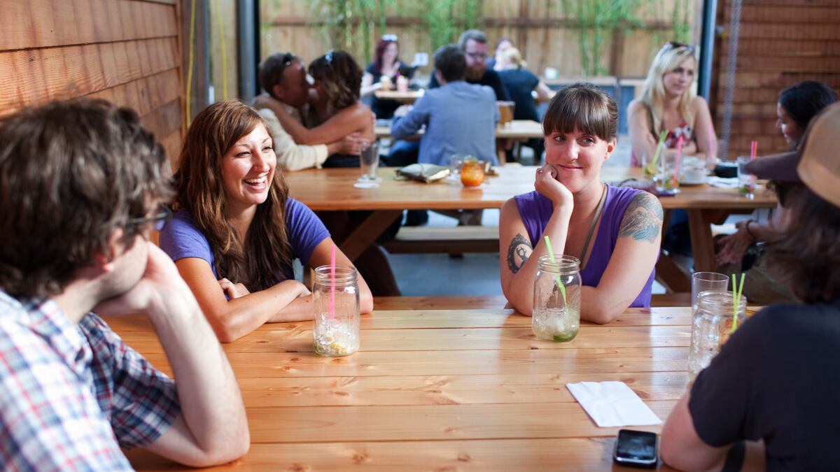 Lines can get long at this hyped vegan cocktail bar, but the committed assortment of regulars is what proves its place in our hearts. Vegan rice bowls with jerk tofu and coconut kale keep the crowds happy, aided by boozy Mason jar drinks that pepper a solidly built craft cocktail menu.