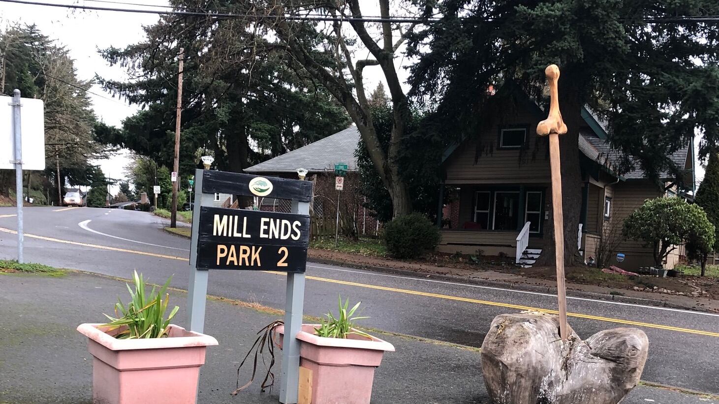 Although the Mill Ends Park 2 sign bears the Portland Parks and Recreation logo, Mark Ross, the agency's spokesperson, says it's not a city project and that Portland Parks was unaware of its existence.
