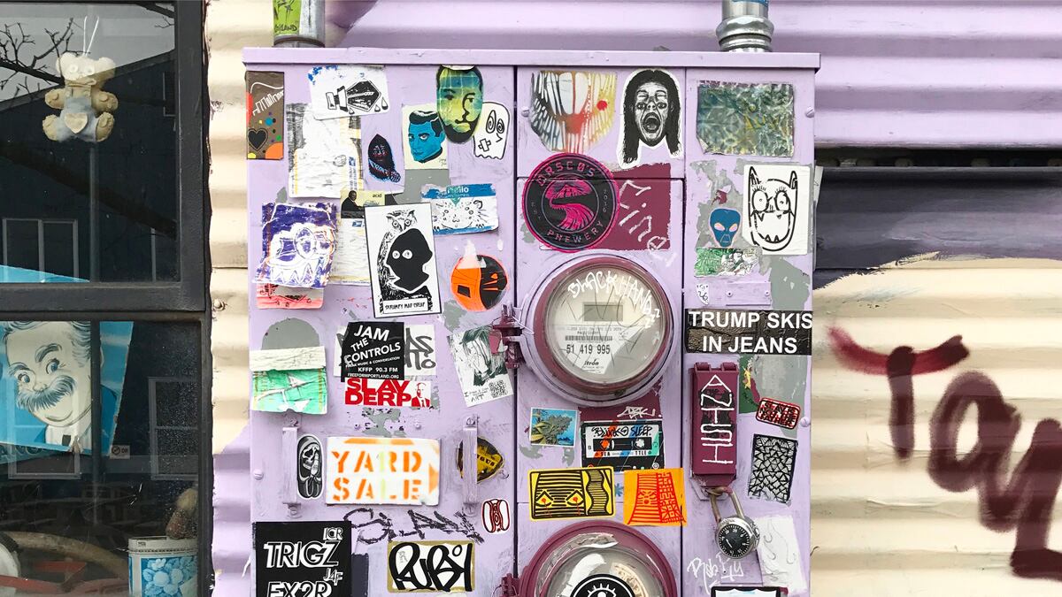 At a glance, the stickers that plaster street poles, stop signs and fire hydrants on nearly every block in Portland might look like urban detritus. But "slap-tagging" has become a platform for DIY artists around the world. And we're one of its major hubs.