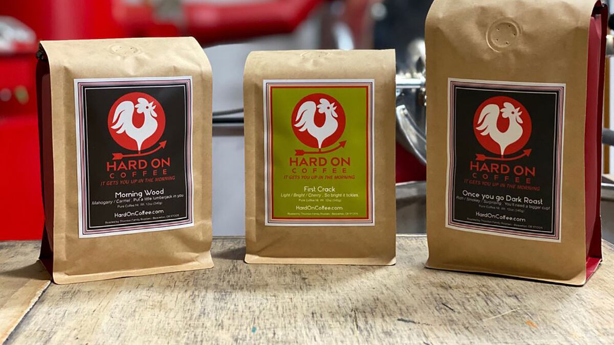 McAbery then partnered with Thornton to create three blends, each with their own dick-joke flair: Once You Go Dark Roast, Morning Wood, First Crack. Though it's only been a month since Hard On sent out its first package—on April Fools' Day—McAbery's seen interest in the brand peak on social media, largely thanks to the adult wordplay.