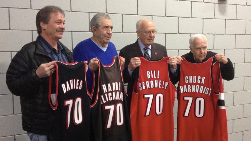 In return, the Blazers threw in one more gift: an official jersey with his name on the back and the number 70, because that’s the year he started following the team. Only Glickman, announcer Bill Schonely, and statistician Chuck Charnquist share that honor.