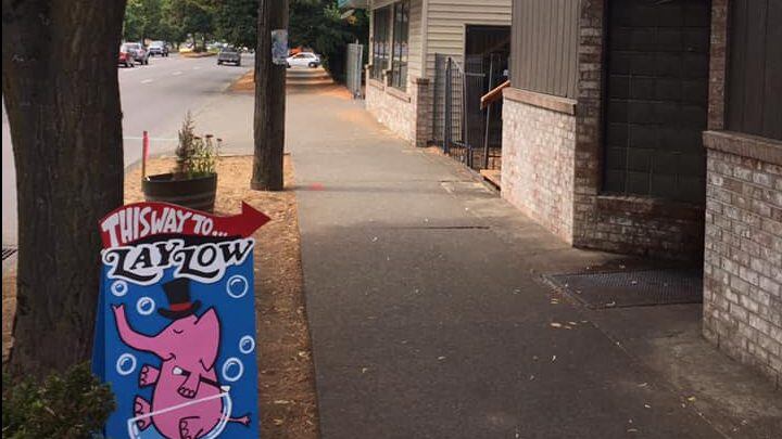 But his most visible work are his sandwich boards—sidewalk-spanning placards illustrating some of the city’s most resonant civic brands. He’s given the tiki treatment to the Alibi Lounge to classic indie panache to Jackpot Records and the Vern. His personal favorite? The schnozzled pink elephant repping Foster-Powell dive bar Lay-Low.