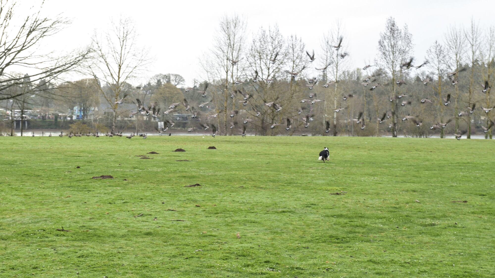 The strip of field along the Willamette was beyond patchy. It was downright balding—the large brown patches of dirt weren’t just an eyesore, they could lead to erosion problems along the riverbank if left unattended. And if that were not bad enough, the carefully planted native trees and shrubs as well as a paved walkway were completely coated in bird droppings.