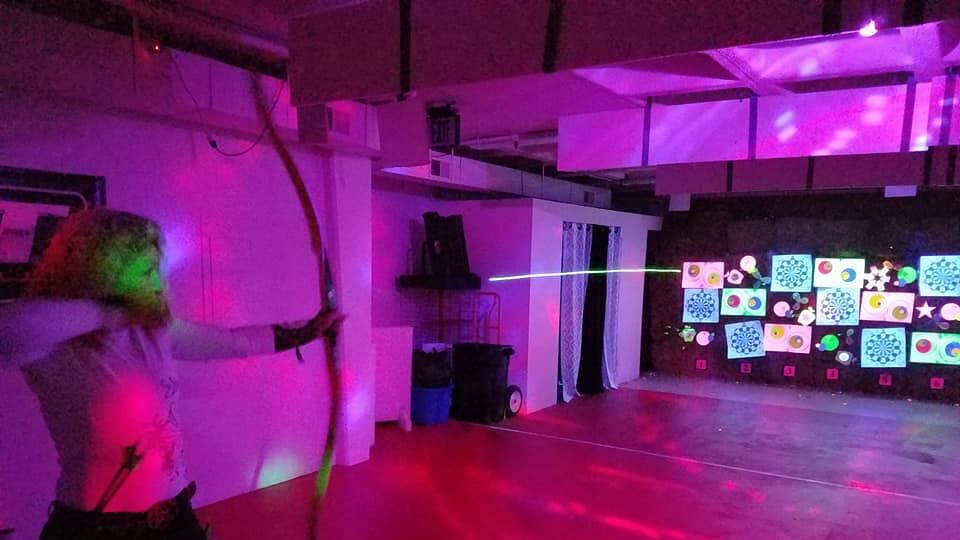 Why not cosmic archery? If you can’t make the regular night every month ($20 per person), go ahead and book the cosmic room for a party ($30 per person). Every event includes a lesson where you learn some technique and a lot of safety.