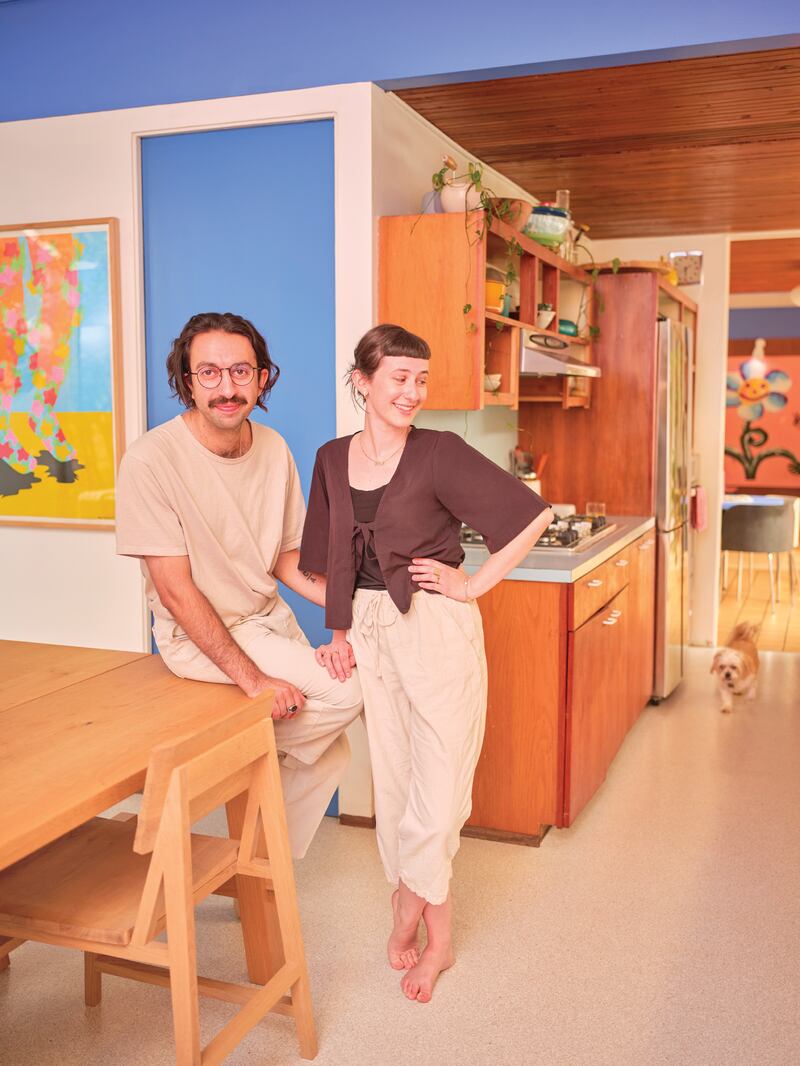 Since purchasing it in January 2021, Morgan and Berahimi have been deep diving into their home’s history and learning about the tenets of International Style that inspired celebrated Portland architect William Fletcher to build the home in 1959. The former model home—located in a cluster of midcentury abodes, all featuring the era’s popular low-slung roofs and brick façades—once stood for all of the advances of the Atomic Age. “I didn’t know that there were houses of this style in the city,” Berahimi says.