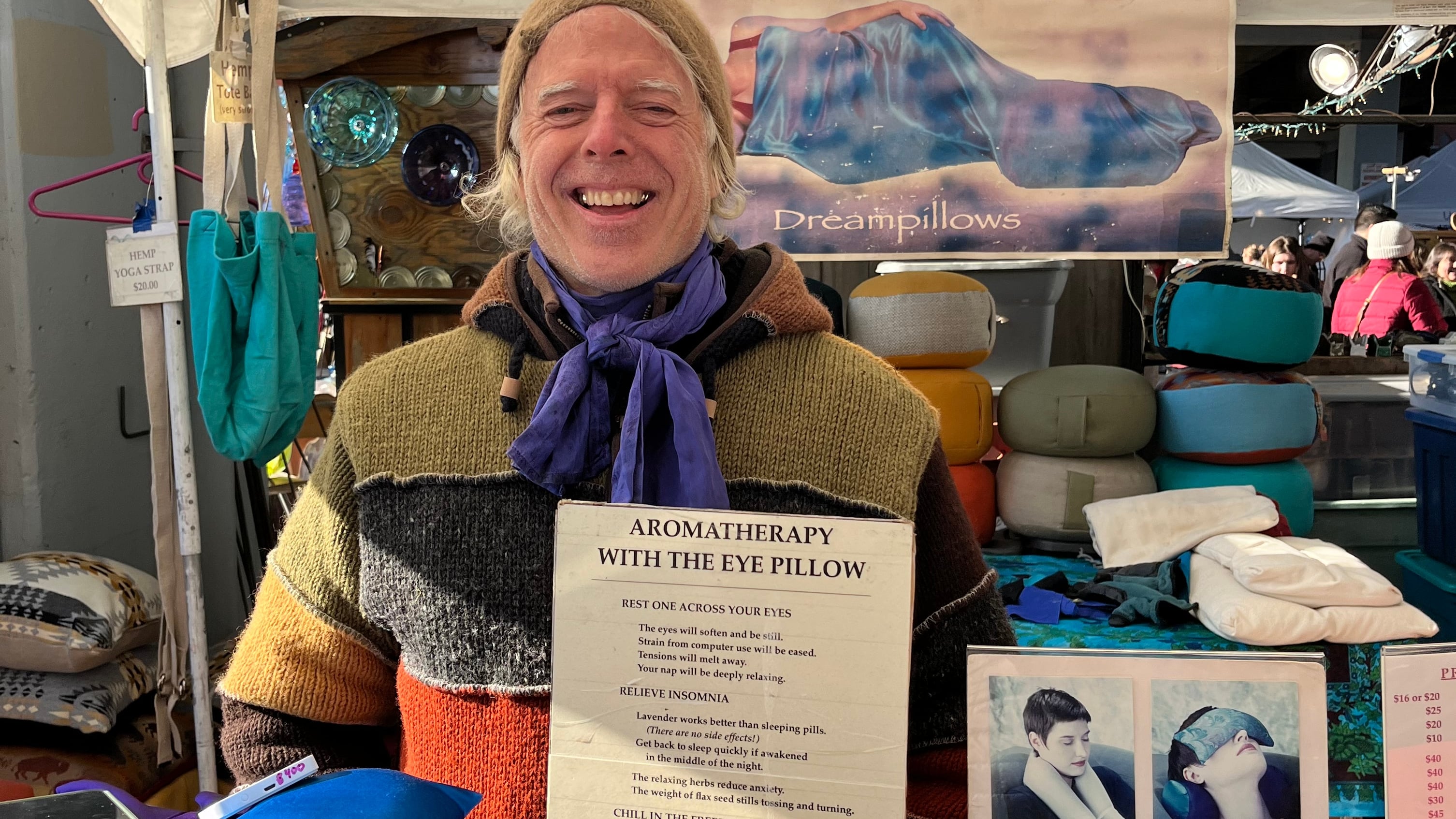Just talking to Moore, 69, at his stall is relaxing, and the scents coming from his wares add to the calm. Few people have thought as much about pillows as Moore. He started making eye pillows as gifts.