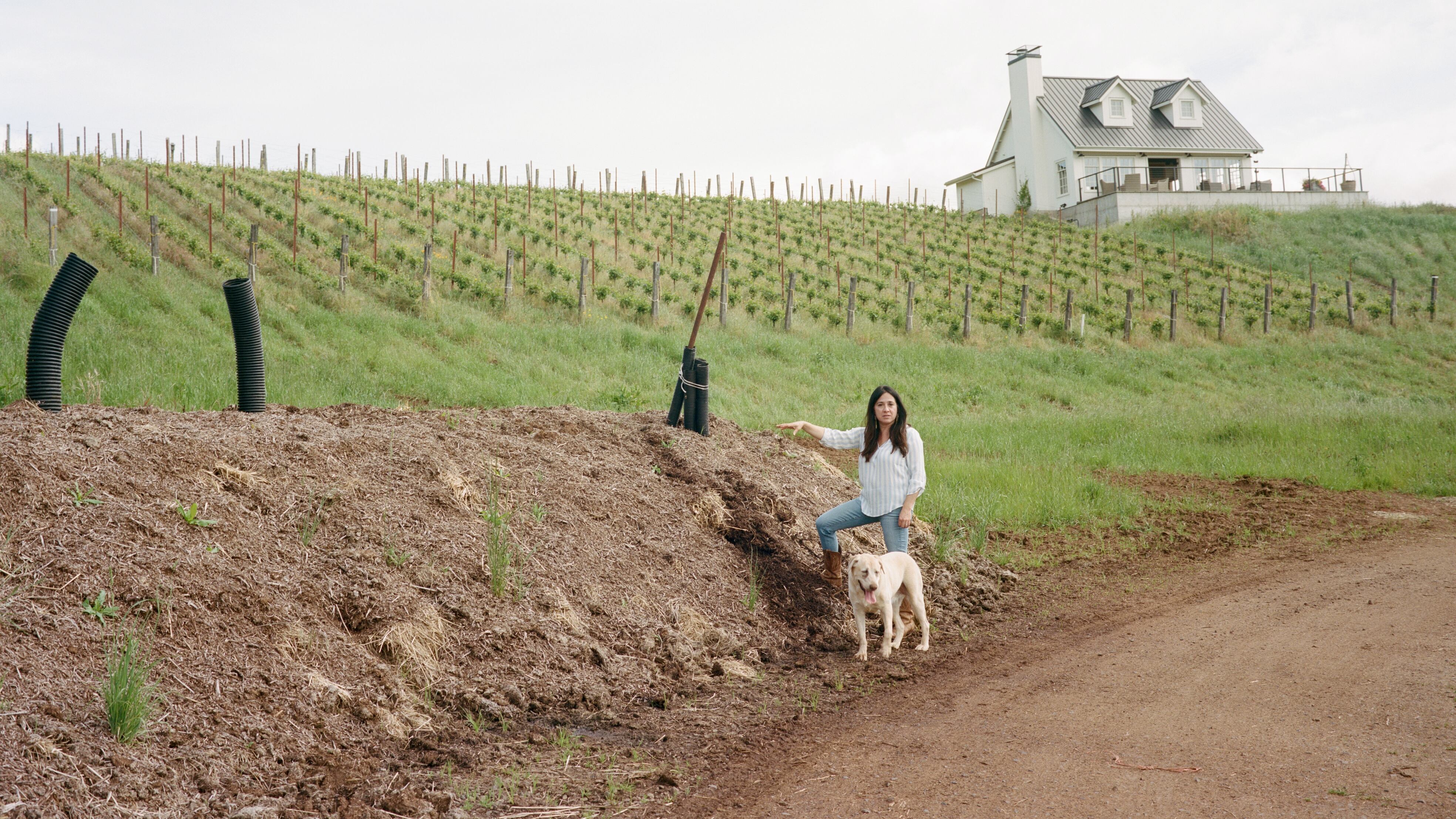 If the nurturing description for a mound of dirt sounds unusual, well, that’s because Cramoisi’s mound of dirt is rather abnormal. Oh, and don’t call it dirt. Torres McKay and her husband and vineyard co-owner, Ryan McKay, have some pretty strong opinions about soil—”something that is healthy, that is alive,” she says—and how that is very much not dirt for a good reason: The ground where their wine grapes grow is where quality control begins. And to cultivate the land with care, the two turn to their compost heap, which can get as large as an RV and is monitored not quite as attentively as a child, but at least as closely as the vines that produce Cramoisi’s precious fruit.
