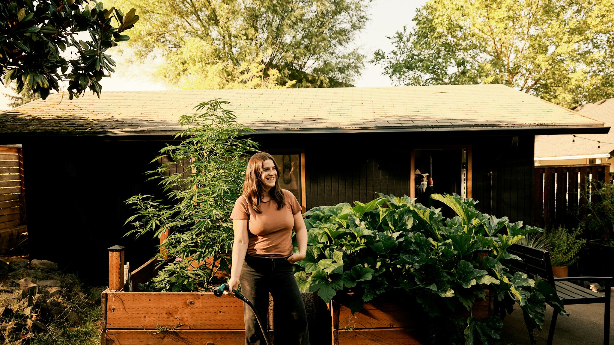 Close your eyes and picture a weed smoker’s house. Are there tapestries on the wall? A copy of Paul’s Boutique whose gatefold cover bears the eternal residue of joint-rolling? A lamp converted to mood lighting by way of a scarf draped over the shade? This house is not that.