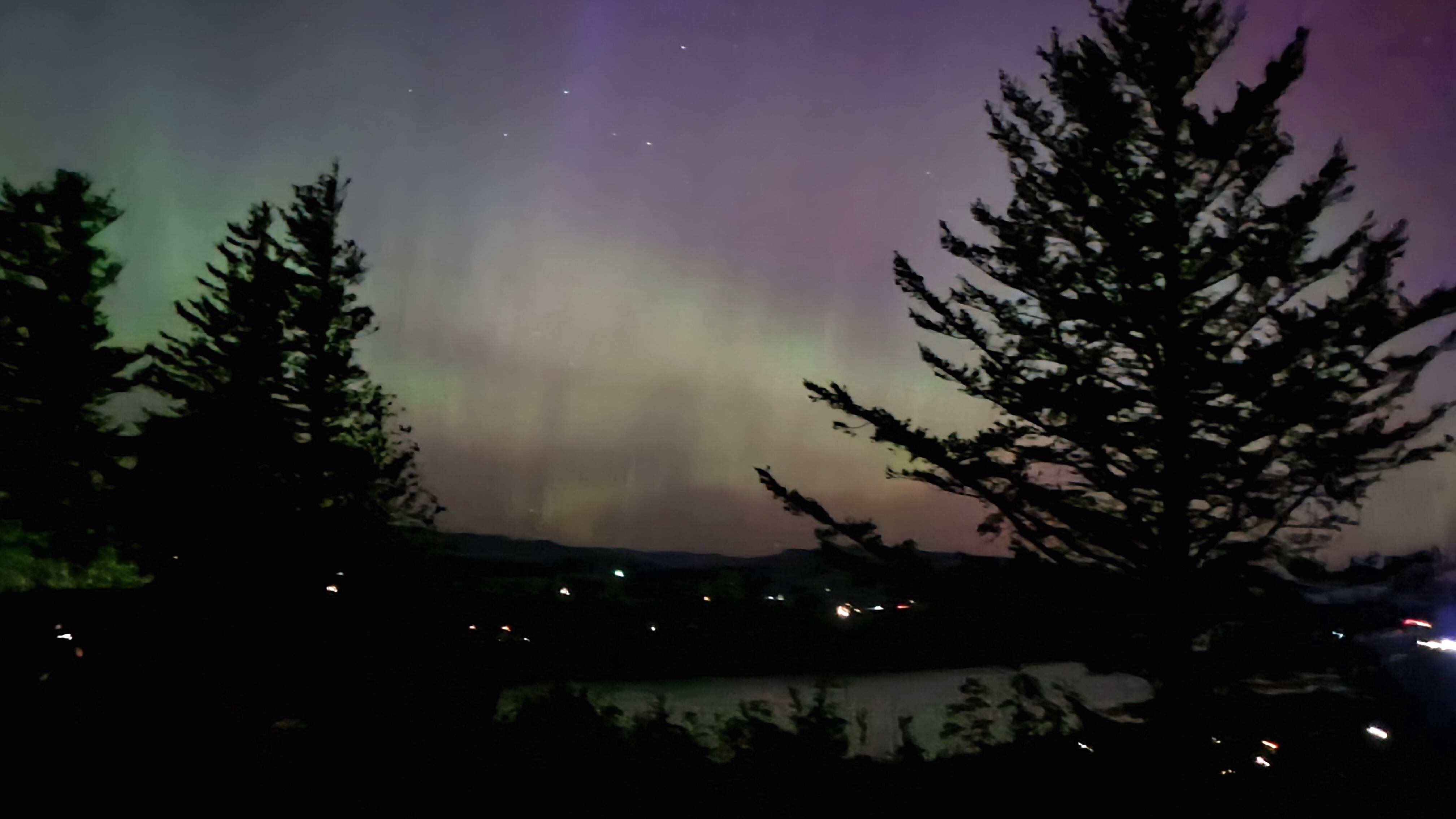 “You could see the faintest of like light green streaks in the sky, but most of the coloring required the camera on night mode, long exposure to pick up the UV rays,” McIntyre wrote.