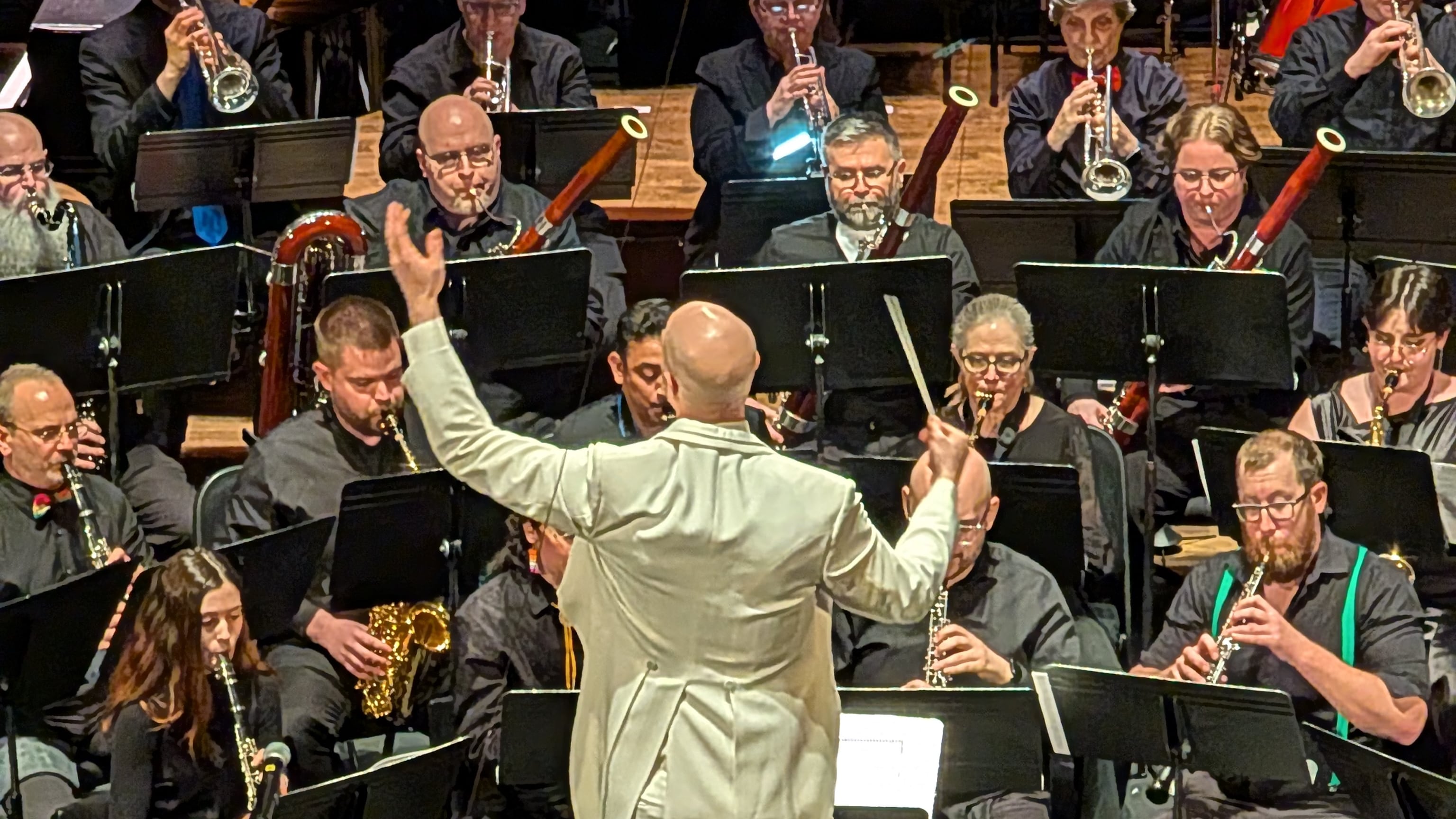 Both choirs are open to people of all gender identities. Membership is contingent more on vocal range than how singers identify. PGMC takes tenors and lower, while PLC accepts altos and higher. Each choir stood on nine risers, though Bridging Voices has around two dozen members, but both adult choirs together needed every step of 13 risers. Program highlights included PGMC’s “The Awakening” by Joseph Martin, which employed the choir’s full range, along with RCPB’s rendition of “Of Our New Day Begun,” an arrangement by Omar Thomas commemorating the people killed 10 years ago by a domestic terrorist in Charleston, S.C. It would be hard to top the show’s climax, which saw both choirs accompany RCPB for Mahler’s “Resurrection” Symphony, but they tried anyway with a lighthearted encore of Natasha Bedingfield’s shamelessly sunny feel-good banger “Unwritten.”