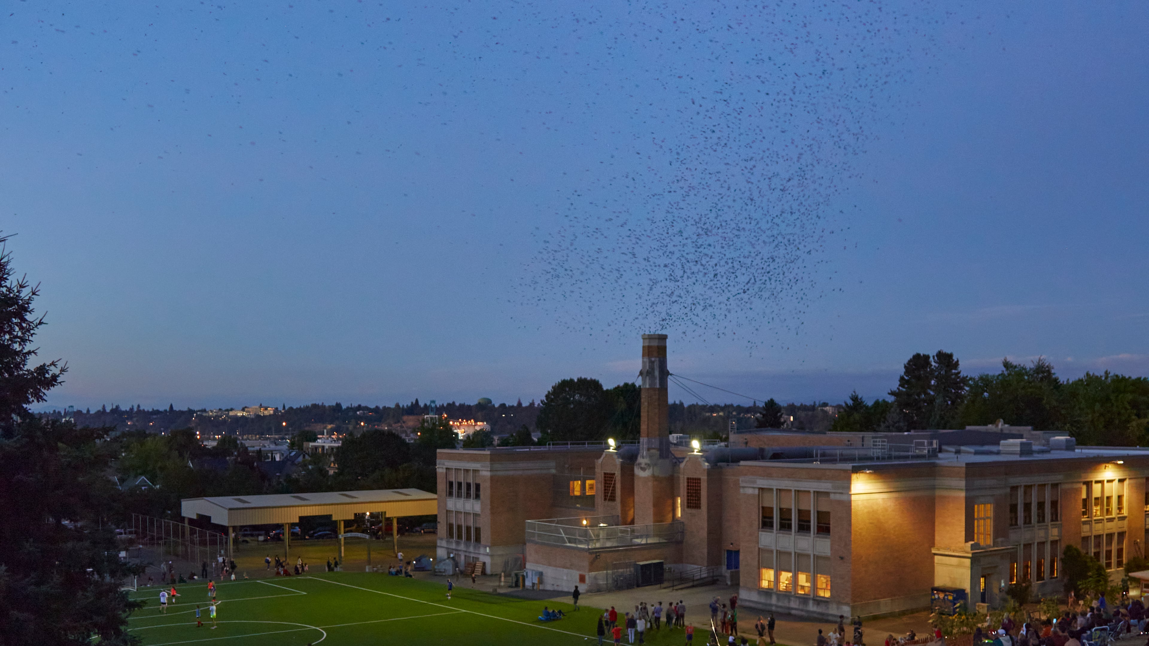 Since the mid-’90s, up to 20,000 of the tiny birds have swarmed the chimney each night in September in a skyward spectacle at sunset. After flying in increasingly crowded circles around the cylinder, they would suddenly dive into the 1923 chimney to rest for the night. The audience—numbering up to 3,000, according to the Bird Alliance, which estimates both bird and human attendance—would clap and cheer. (The event’s fanatics call themselves Swifties.) The swifts take a Portland layover during migration from their Pacific Northwest breeding grounds to their tropical winter homes in Central and South America.