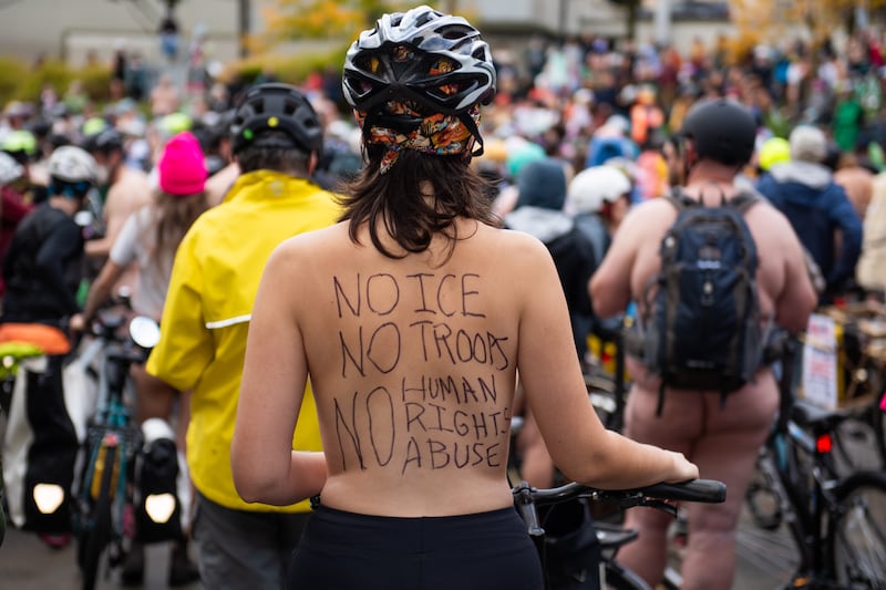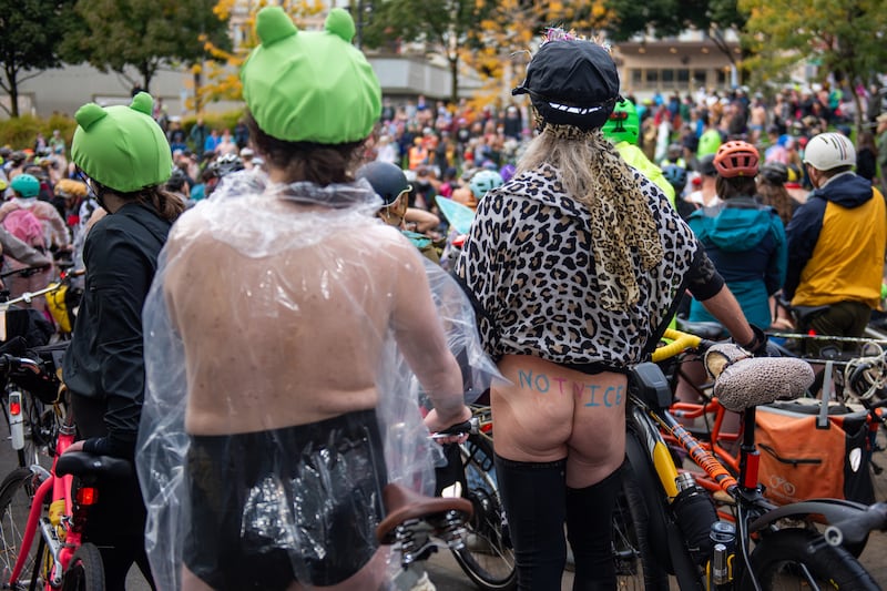 Emergency World Naked Bike Ride, Oct. 12, 2025. (Kenzie Bruce)