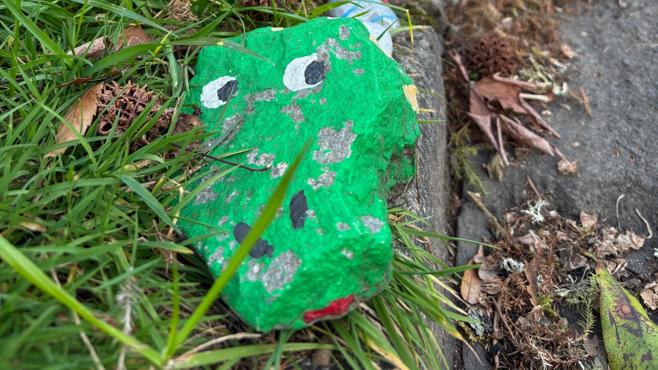 A year and a half later, Floyd is nearly 300 rocks long. There’s a Marge Simpson rock, a Portland Pickles one, many rainbows and flowers, and one very close-up eyeball. He grows most in the summertime, when he is photographed and videoed on a daily basis and sometimes ends up on social media. “He’s going to have to jump the driveway soon,” Hepler says.