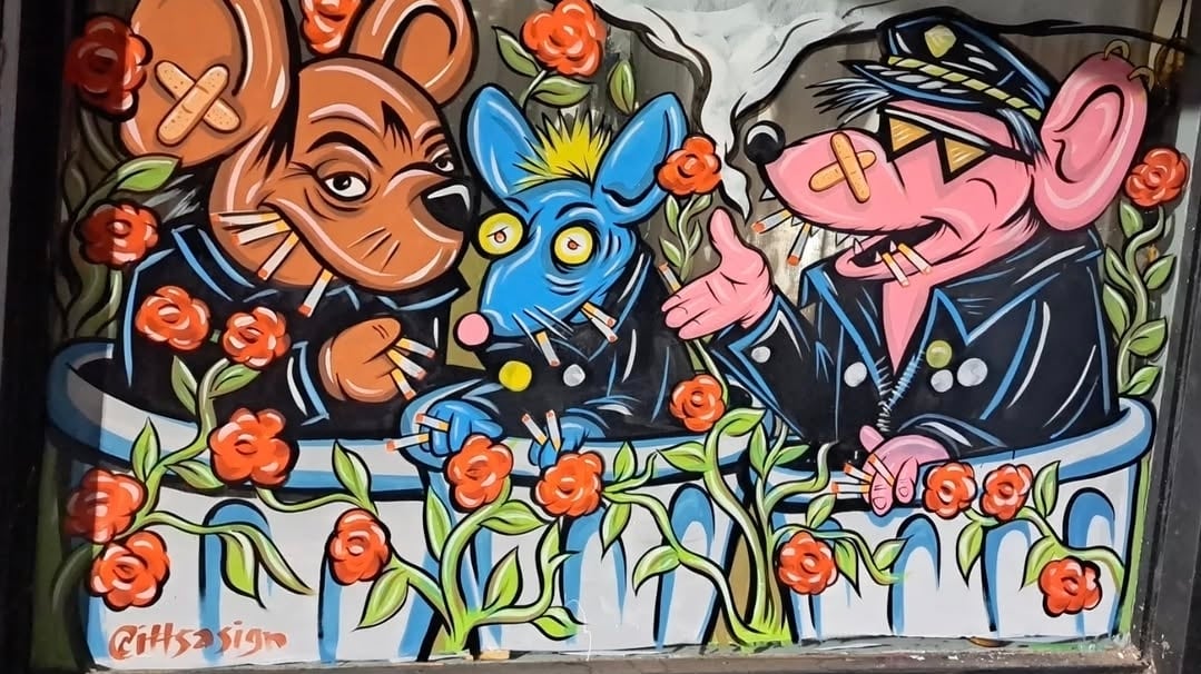 Also a designer of event flyers and record covers, as well as the founder of the Artshitz flea market, Keith hopes to paint the town colorful as long as he can. (Keith collaborates with an artist named Jade on larger projects.) “It’s been a pleasure getting to paint for folks,” he writes, “and I’d be lucky and psyched to keep doing it one form or another for as long as I can.”