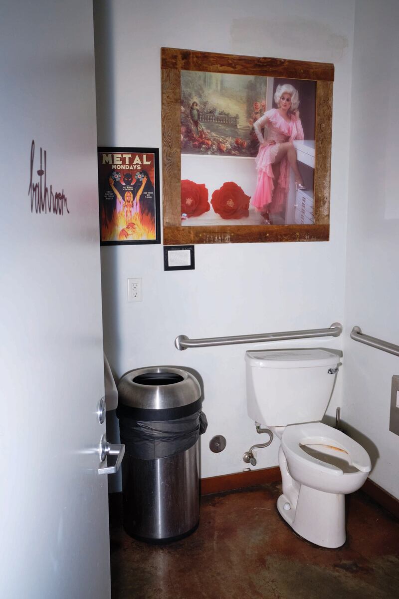 “We want the bathrooms to be good, but not too good,” says Ezra Ace Caraeff of the bathrooms at his six bars. Leave it too grungy and you invite vandalism; make it too swanky and you invite vice. When Caraeff opened Paydirt in 2015 and was casting about for ways to encourage good bathroom citizenship, he decided to summon Dolly Parton. And to do that, he had to call his dad. Ed Caraeff was a prolific music photographer who shot covers for multiple Parton albums, including 1977’s Heartbreaker, an enlarged photo from whose shoot greets Paydirt patrons who need to pee. (Caraeff’s other subjects included Jimi Hendrix, Steely Dan and the Bee Gees; he specialized in the kind of hazy, soft-focus look at which Parton excelled.) Unlike other restrooms at the Zipper building, Paydirt’s bathroom has never once been tagged, he says; people simply respect Parton too much. “This country doesn’t agree on anything, but I think we can all agree on Dolly,” Caraeff says. “Under her watchful eye people kind of behave a little bit better.”