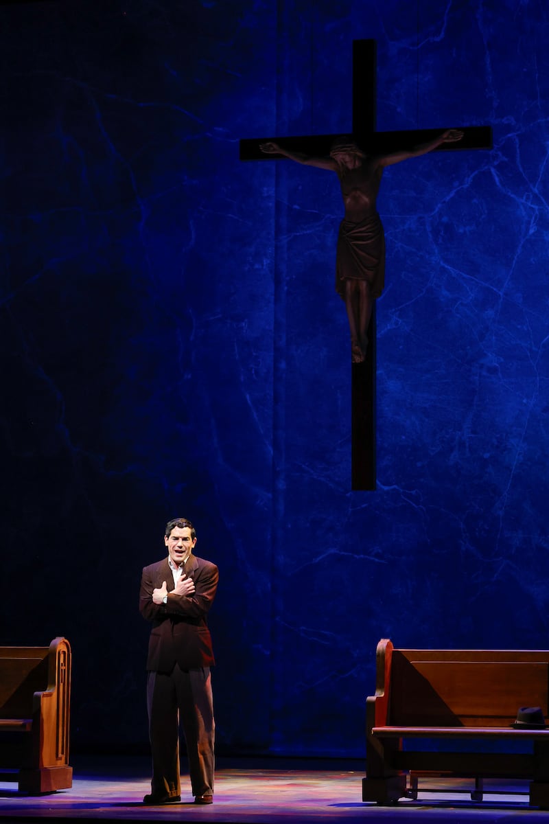 When it came to moments of emotional and physical intimacy between the two characters, Newbury made a big change in the staging compared with the original production. Except in New York, the opera didn’t previously contain nudity, but he felt that now including partial nudity was “essential because we haven’t seen that level of intimacy between two men on the operatic stage until this show.” Like on television shows you’d see on HBO and Showtime—where Heated Rivalry and Fellow Travelers aired, respectively—the intimacy, coordinated by associate director Sara E. Widzer is tasteful and helps advance the story.