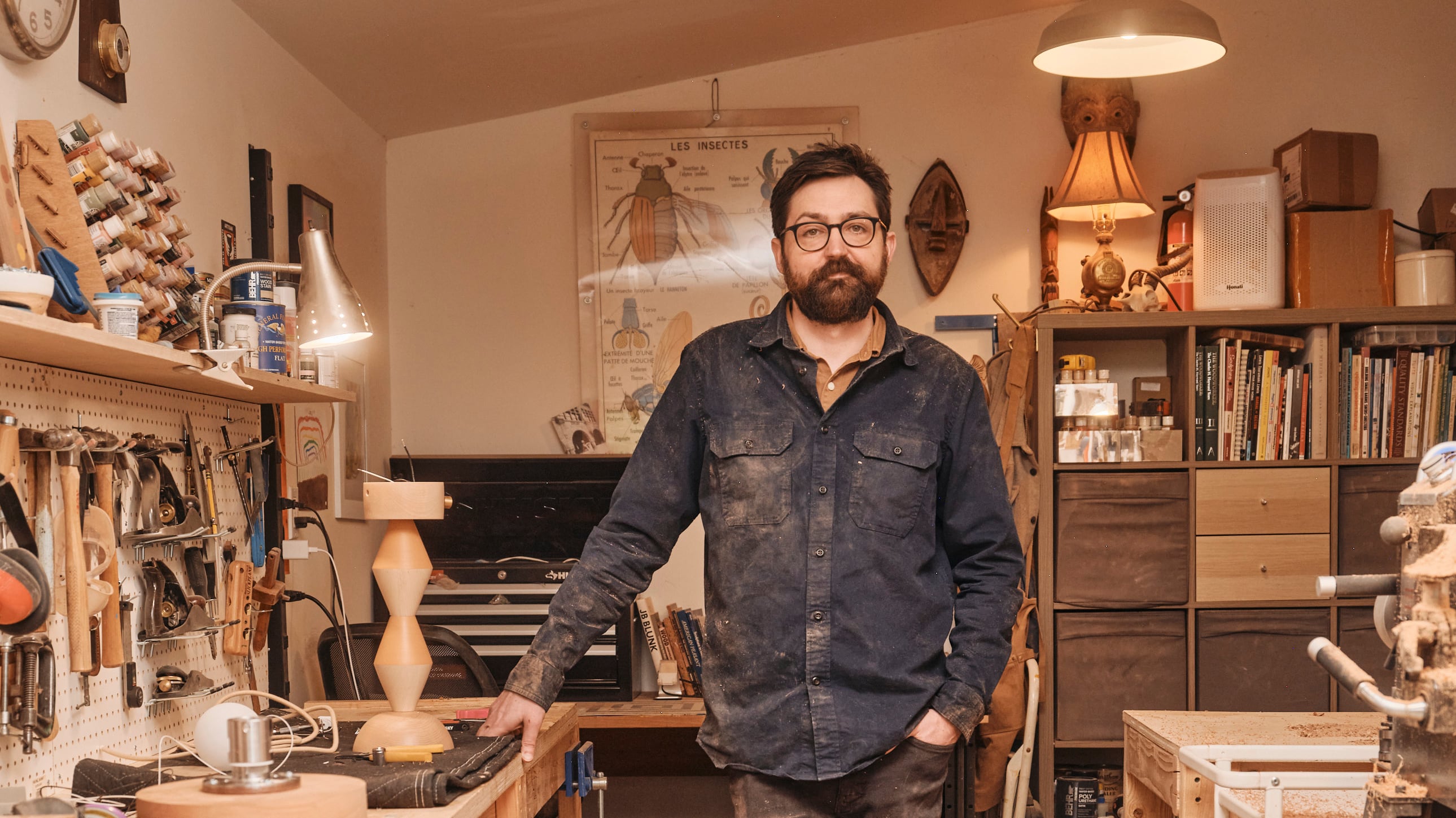 “I never use stain because it feels sort of like lying,” he says. “I feel like if you want dark wood, use walnut. If you want a light color, use maple.”