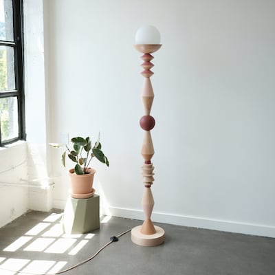 Walter’s lamps feature clean, natural geometry in warm colors: coral, terra-cotta, dusty pink. He draws inspiration from 20th century modern organic furniture designers George Nakashima, Isamu Noguchi and Wharton Esherick, and contemporary light makers Anna Karlin, Rogan Gregory and Lindsey Adelman, who he says expand what “light fixture” can mean. He keeps sculptor JB Blunk’s monograph in his shop.