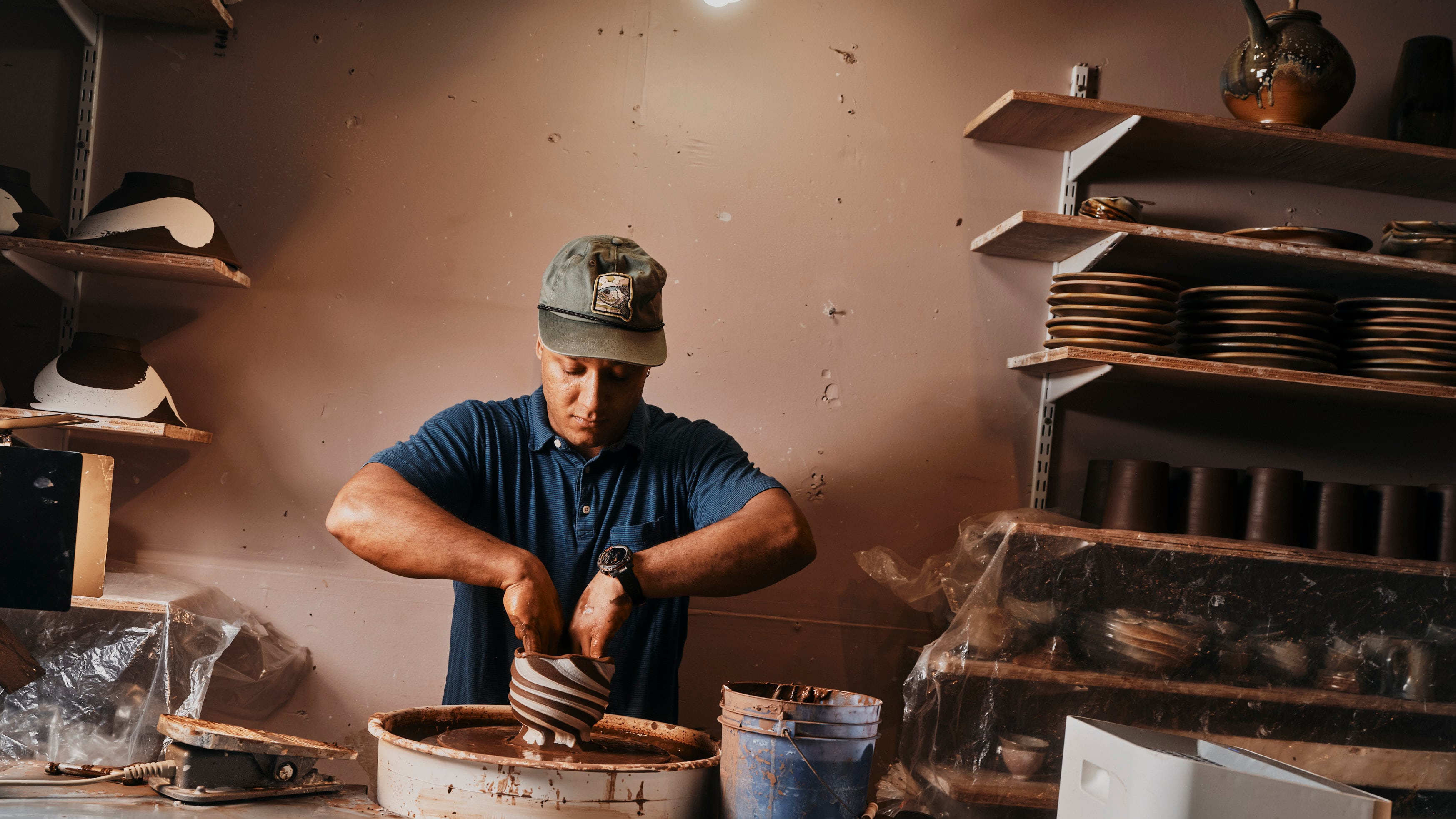 He stayed creative in other ways—he was interested in clothing and street art—but always wanted to try pottery. In high school, Sackey found a potter’s wheel underneath his grandparents’ house that an uncle of his had used, so he decided to bring it inside and try using it.