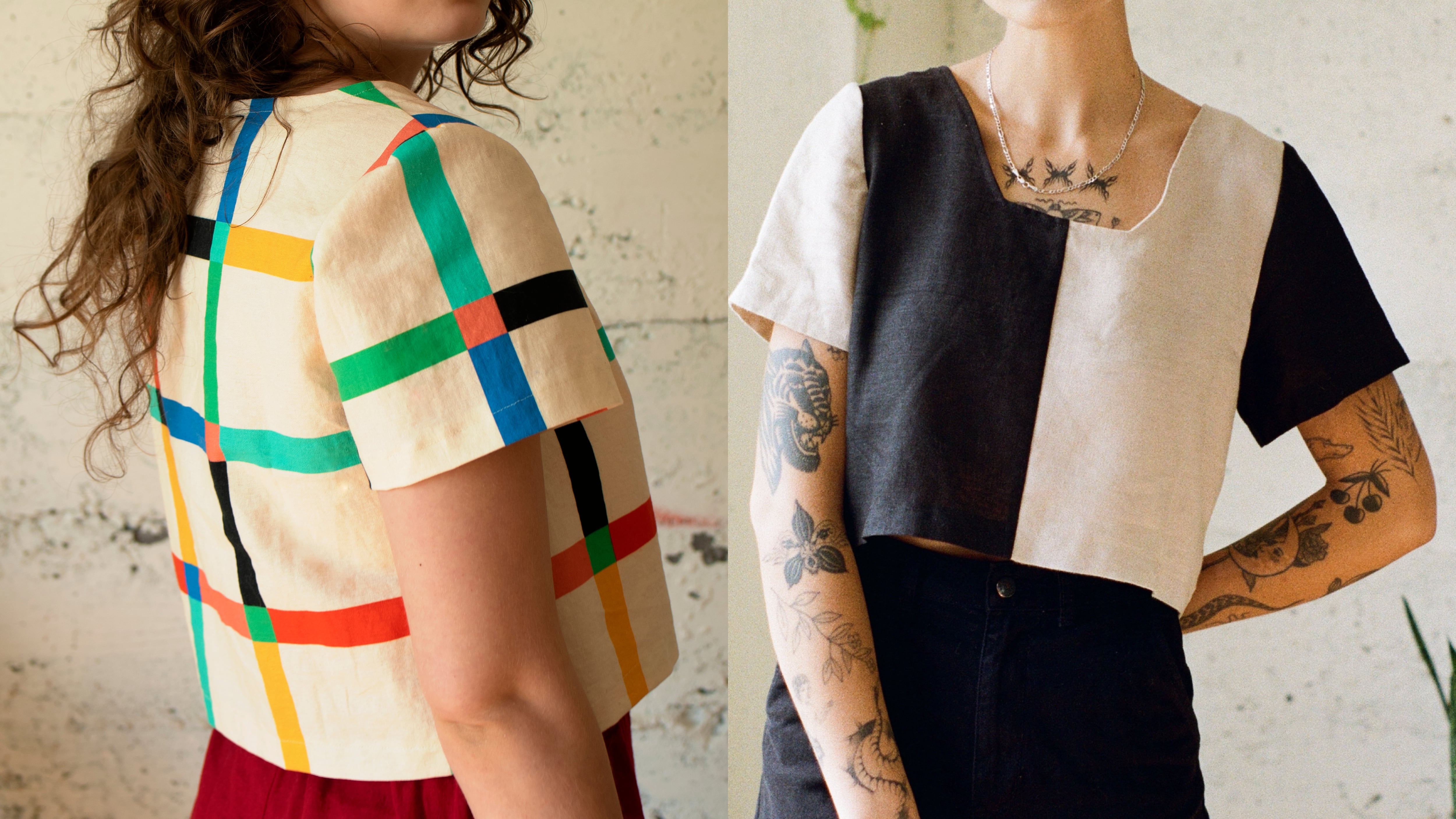 In the last two decades of his life, Henri Matisse put down the paintbrush and picked up a pair of scissors, delving into an exploration of exuberant contrasting paper cutouts. This playful vibrancy can be found everywhere these days, including in the patchwork garments created by Jennifer Neil for Ersa Fibers (now co-owned with Chris Bly). What began as bedding and fabric art in 2021 has branched out into more than a dozen handmade textiles for crop tops, midi skirts, babydoll dresses, and sweatshirts. The fit is boxy and designed to suit all body types from a black and white starburst blouse ($135) to a knee-length prairie dress spattered with summer fruit ($215). Neil’s outlook is feminine but comfy, equal parts date-night dress-up and collaging on the floor as a kid. When she’s not designing, Neil has collected a social media following for her sewing how-tos and styling videos.