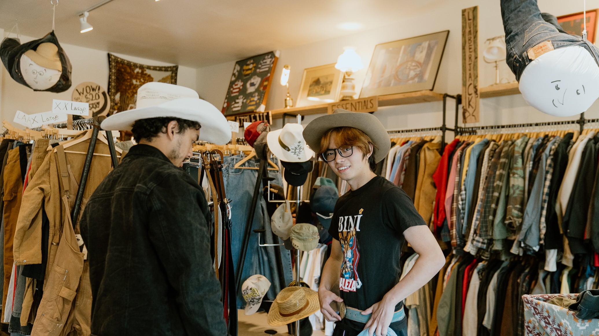 In addition to the main North Lombard storefront, there’s a second property out back that sells housewares, books and “clothing heaven,” a bargain basement of $5 finds with sky-themed tapestries hung all around. Ethan gleefully reads aloud a scathing online review of clothing heaven, which calls the room musty and creepy. Both accusations check out.