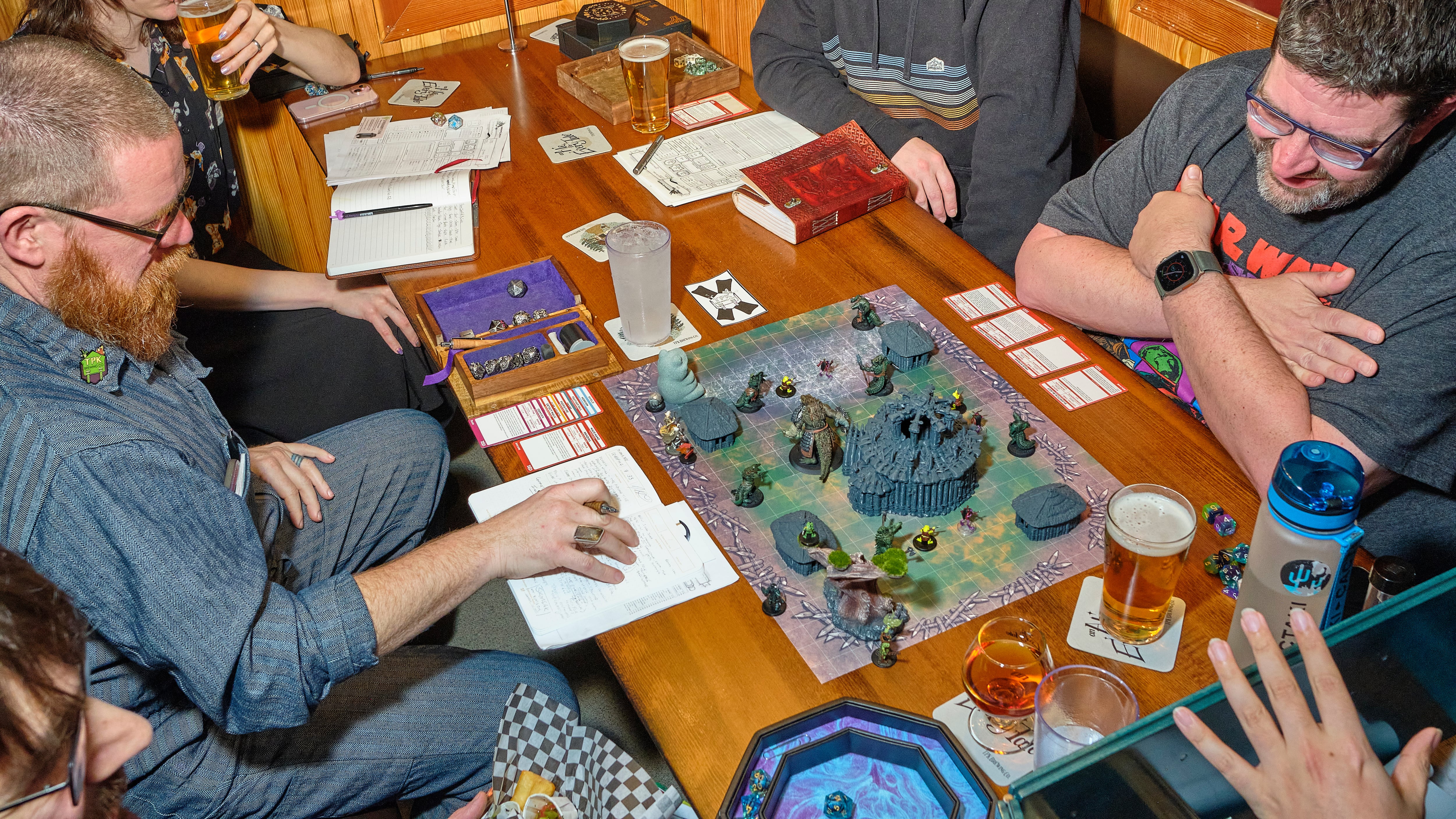 Behind TPK Brewing Co.’s peaked roof and cottage doors, young and old, queer, nonbinary, and people of all color gather around LED candle lights and a smoldering fire, poring over detailed character miniatures and intricately drawn maps of the in-house world of Val’Ruvina. TPK is one of the world’s first tabletop role-playing game-themed breweries and Oregon’s first brewery owned by a queer, Indigenous woman of color.