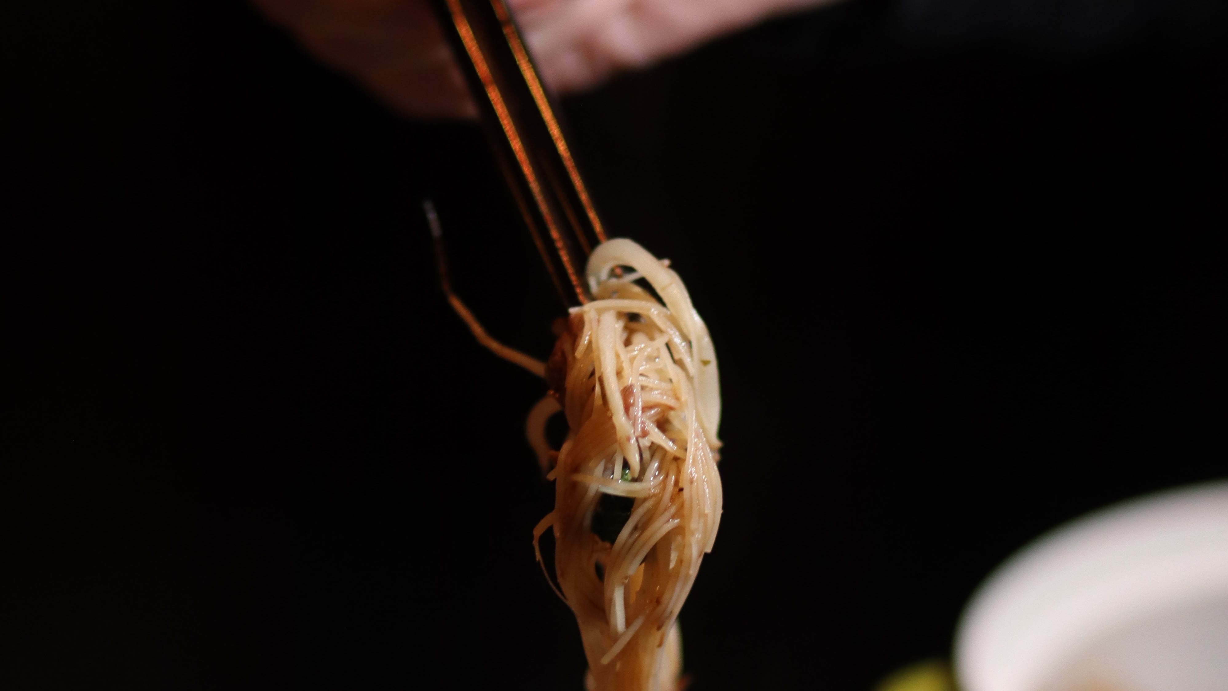 Despite our ordering most of the menu at once, Mama Ta whipped out dish after dish at superhuman speed. Much of the fun is watching her work, half-hidden by a parted gold curtain that barely separates the kitchen and the dining room. Shumai ($12) are juicy and piping hot and arrive in a little steam bath of chile oil. Sakoo ($8), radish and peanut tapioca dumplings with palm sugar, felt almost dessertlike until I was met with the strong punch of heat and crunch of fried garlic.