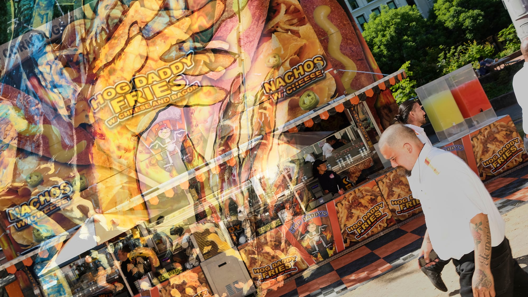 Vendor: Hog Daddy’s, the most conspicuous booth at CityFair, emblazoned with a cartoon pig riding a motorcycle. It also serves an ear of corn coated in Flamin’ Hot Cheetos dust, for $9.
