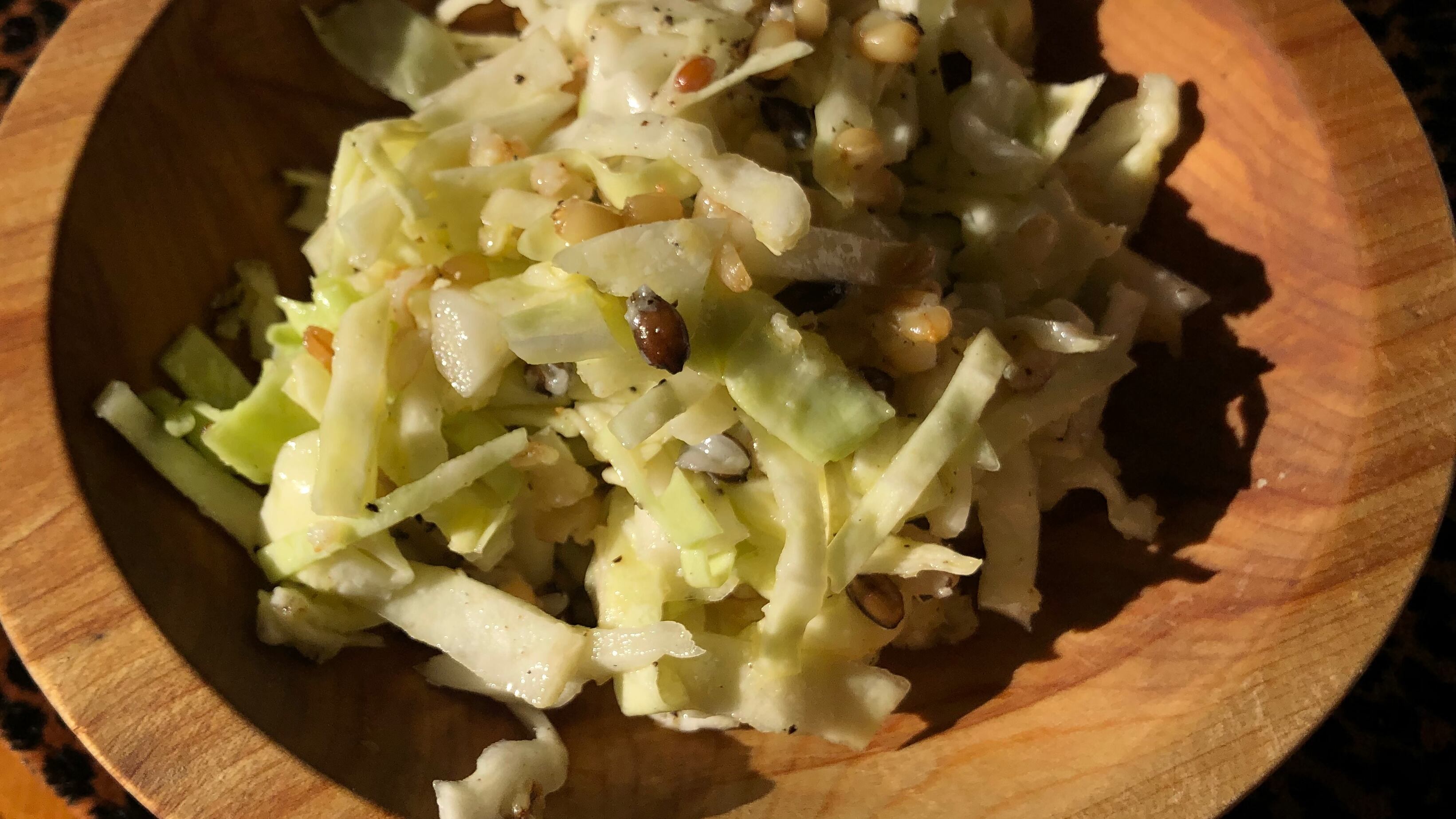 While green cabbage is ubiquitous, not many stores sell naked barley. Also called hulless barley, it has a loosely attached hull that slips off. The more common pearled barley has had its hull and most of the bran ground off, a process that removes fiber and nutrients. We’ve got the last of Ayers Creek Farm’s final harvest at Wellspent Market (the couple who ran the farm sold it to move closer to family in New York), a blend that Anthony Boutard called migration barley since it’s a blend of naked barleys from around the world. Other growers offer naked barleys online, and whole-grain farro or other wheat berries can be substituted.