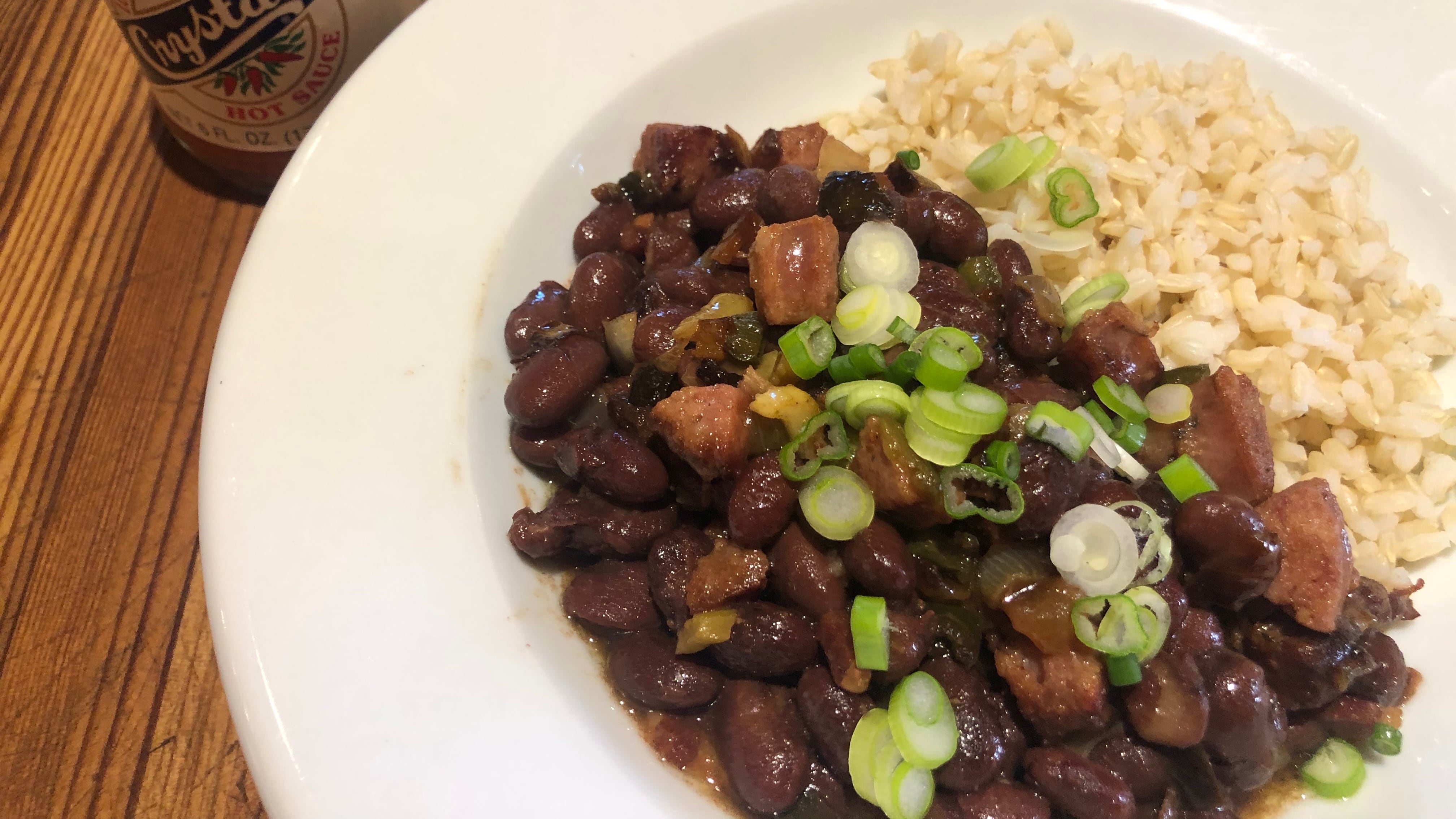 New Orleanians ate red beans and rice on Mondays because it was laundry day, and they cooked their red beans on the stove while the wash water heated. Or maybe it’s because they needed to use the hambone leftover from dinner on Sunday. Nobody really knows for sure how the tradition started, and lots of folks in the Crescent City eat red beans and rice any day of the week. And while many insist that only red kidney beans are acceptable, white beans and rice, identical to the red bean version except for the color of the beans, is considered a Louisiana classic as well. In both the beans are flavored with smoky pork and the aromatics called the holy trinity in the South: onion, celery, and green bell peppers.