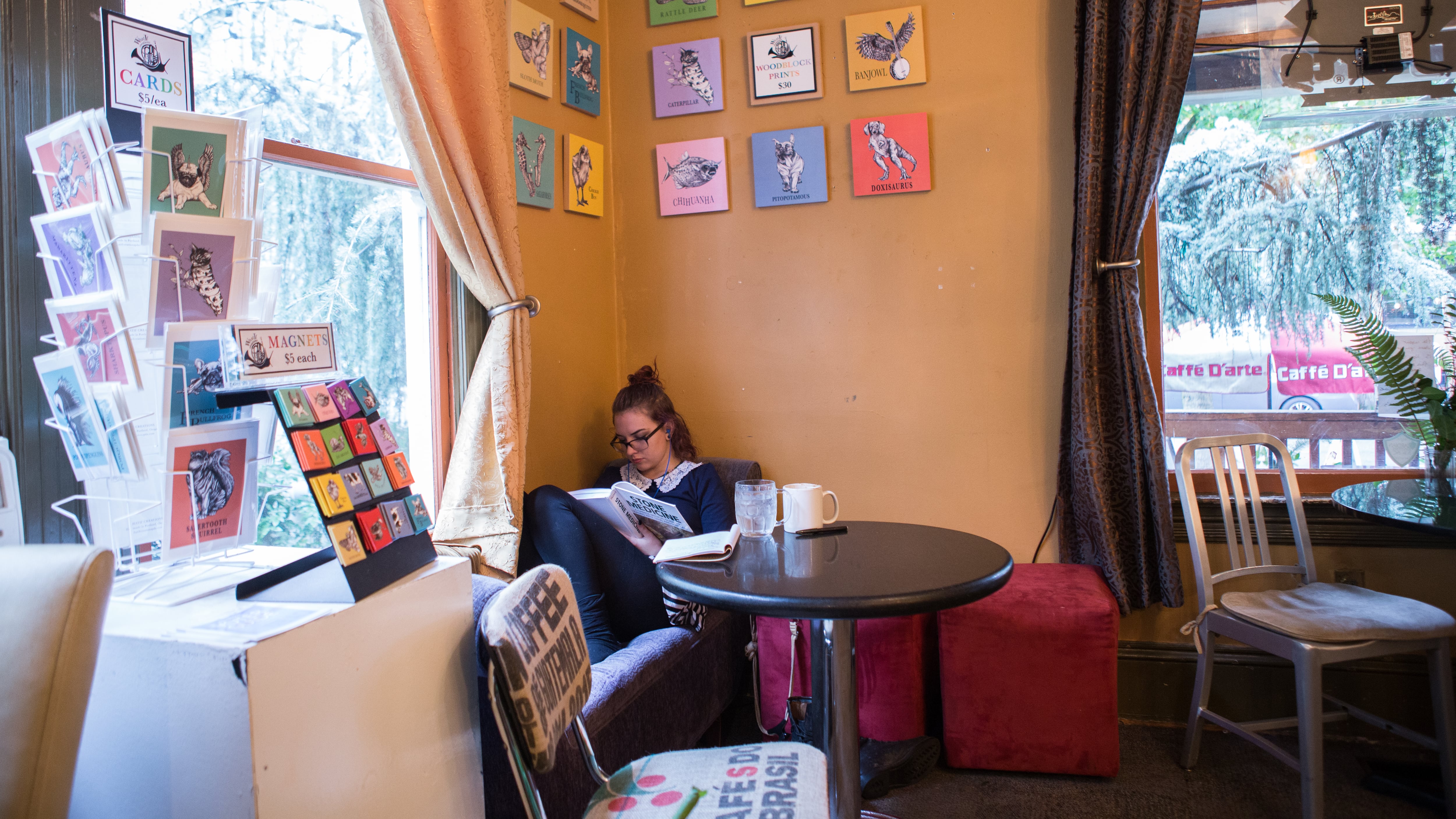 It served espresso and sandwiches from its converted 1903 home with the generous porch and banana-yellow door and window trim. If the well-worn, squishy furniture and relaxed staff didn’t send a strong enough message that it was cool to stay awhile, then the plentiful magazine and newspaper subscriptions, decks of cards, and comic books scattered on every surface would finish the job. Baristas put out The New York Times’ daily crossword puzzle every morning near the register for customers to work on as they waited for their coffee, which made for a fun community project every day.