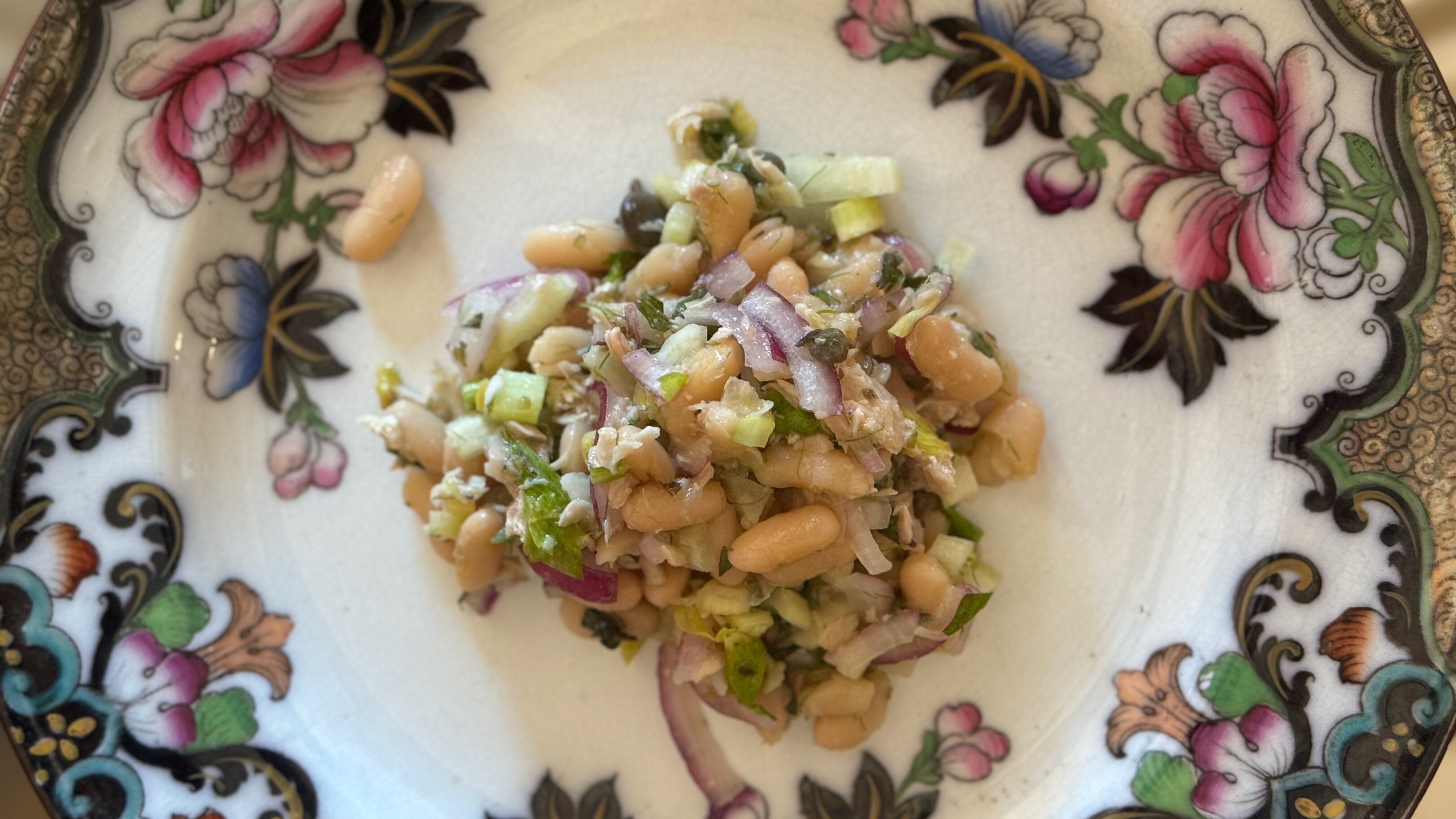 Midsummer means fresh albacore tuna, and this salad might be my favorite way to eat it on a warm August evening. If you cook the beans and tuna the day before, you can throw this recipe together quickly, and it works just as well with good canned albacore (but please don’t use canned beans; they just don’t have the flavor you get from cooking dry beans). You can mellow the bite of the raw onion by soaking the slices in cold water for 10 minutes, then drain before adding.