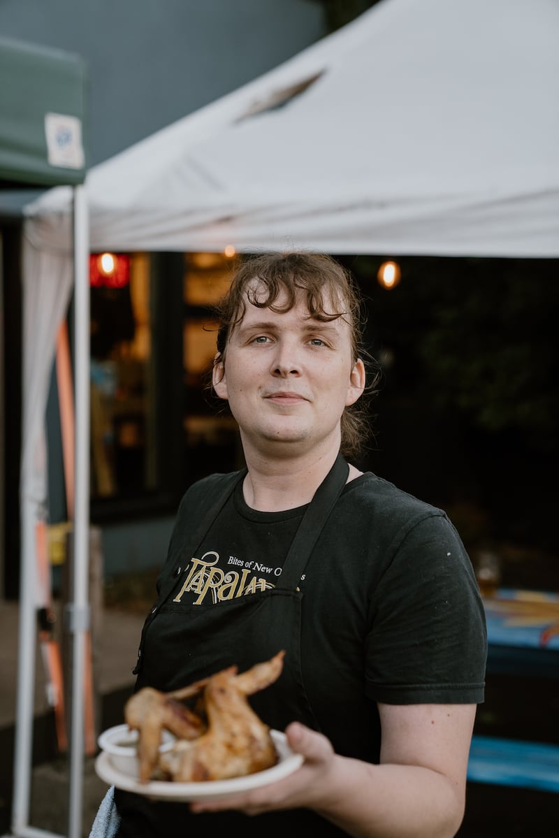 Alexander’s semiregular pop-up concept Salona basks in the limitations imposed by techniques and ingredients available in ancient Rome. Alexander honed their skills at the nonprofit Stone Soup. With an open and diverse palate, Alexander’s kitchen credits include the acclaimed West African restaurant Akâdi, contemporary Thai eatery Phuket Cafe, Tokyo-based chain Afuri Izakaya. Brief stints at Italian restaurants around town inspired Alexander, an avowed history nerd, to start a pop-up named for the ruined capital city of the Western Roman Empire (now in modern Croatia).