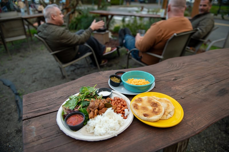 On a recent visit, I ordered vodka and soda ($8) from the simplified bar setup, which gives off more “drinks with dinner” than “frat party” vibes—a pleasant shift. I customized my New Mexican platter with cotija cheese, avocado, and carne adovada (pork slow-cooked in red chile sauce), with a side of tortillas. The food is flavorful and soul warming, making guests feel right at home.