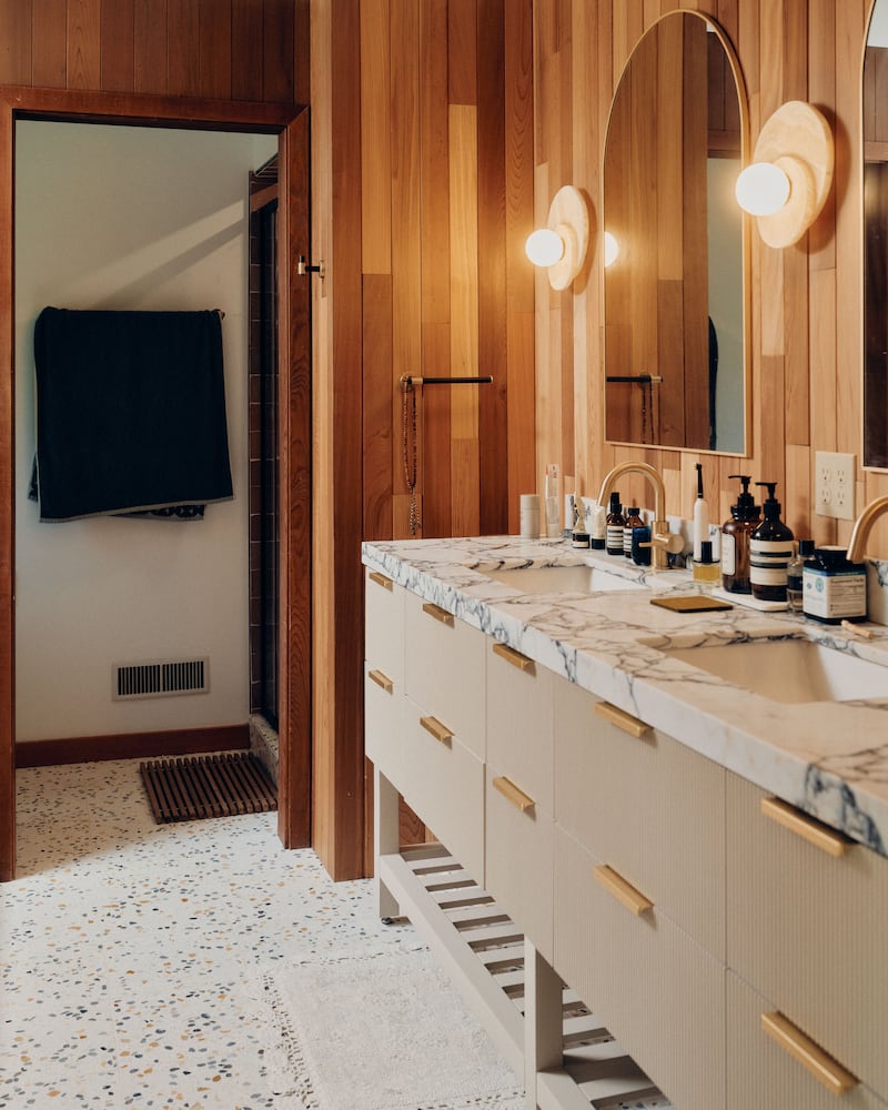 In his modern, renovated kitchen, a nook holding Godil’s chrome espresso machine draws particular attention, as do the handmade Moroccan tiles accenting his coffee alcove and backsplash. “Every tile is unique,” Godil says. “I have it all around the house. This craft supports artisans from my homeland, and each tile is one of one.”