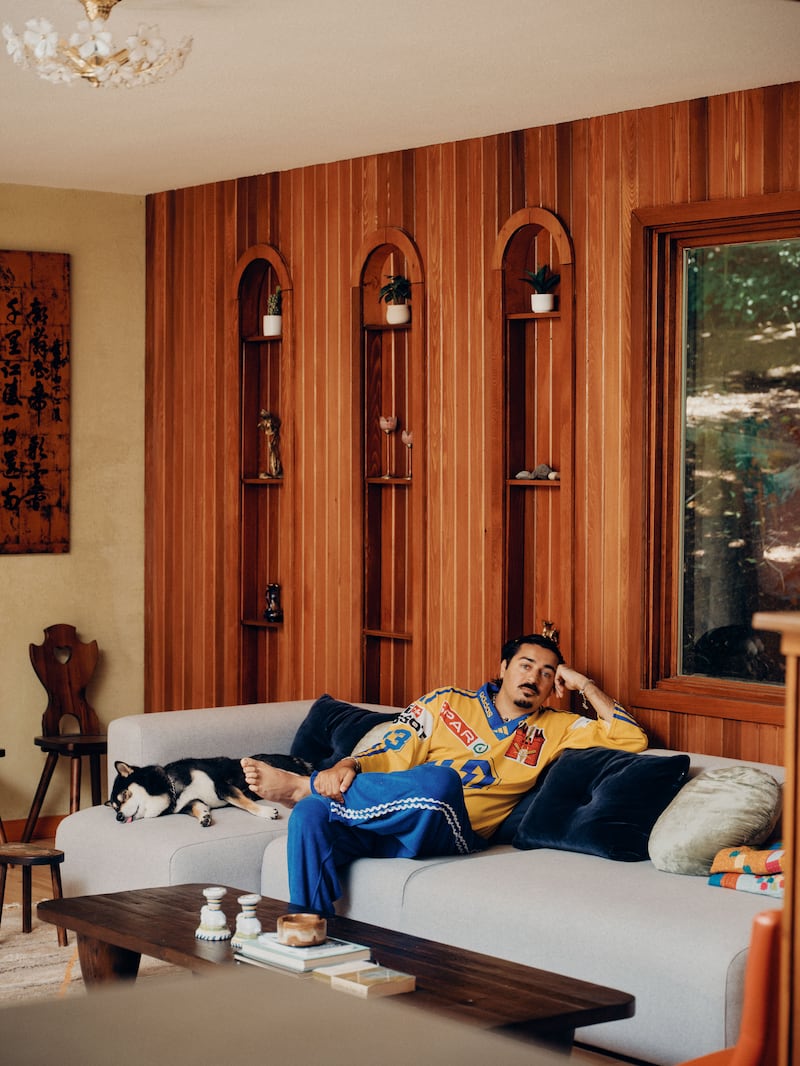 A first-generation Pakistani American, Godil is a creative director, designer, and visual artist whose global perspective permeates not only his award-winning design work, but also every corner of the home he shares with his 2-year-old daughter, Heela. Elements of futuristic midcentury design mingle with stark brutalist pieces in bright, airy spaces. Folk art from West Africa and spiritual art from Northern Mexico adorn creamy, sun-dappled walls. Dreamily intricate artworks influenced by Islamic calligraphy hang near oil paintings of the American Wild West. The influences that inform Godil’s space are vast and varied, yet they come together to form a stunning and coherent collection.