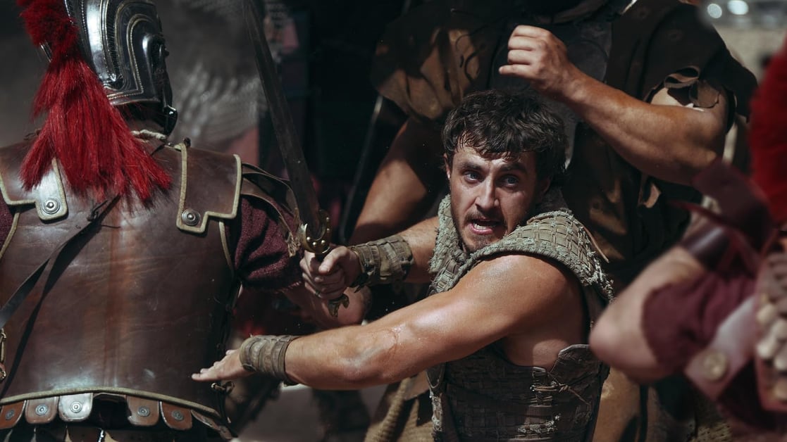 Our story this time around follows Hanno (Paul Mescal), an erstwhile son of Rome who finds himself on the wrong end of the empire when his Algerian home is conquered by General Acacius (Pedro Pascal). While Hanno pursues vengeance through gladiatorial combat, he’s unaware Acacius himself has tired of Rome’s expansionism and plots his own overthrow of the preening twin emperors (Joseph Quinn, Fred Hechinger).