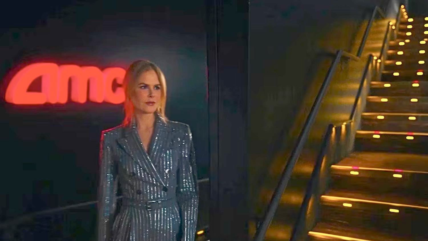 In the ad campaign, suit-clad Kidman (who is now in the process of divorcing country singer Keith Urban) encourages moviegoers to return to the cineplex after pandemic lockdown restrictions. Wafting to her seat while waxing poetic about the benefits of seeing movies on the big screen—”heartbreak feels good in a place like this” being one of the most memorable lines delivered with Kidman’s classic campy-serious delivery.