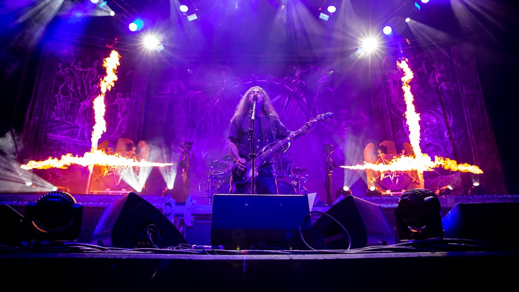 The thrash titans blasted through a megalithic headlining set that began with the title track from its most recent album Repentless, and proceeded to annihilate its back catalog with precision, all the way back to "Black Magic" from their 1983 debut Show No Mercy. Pyrotechnic blasts punctuated each riff, with sustained flames heating up "Hell Awaits" late in the set.