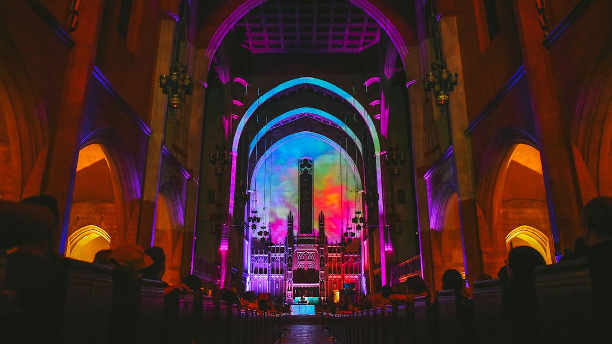 So Sweeny created a performance series hosted in settings built for intimate gatherings: churches. Now two years in the running, Sweeny's nomadic Ambient Church books all ambient and experimental bands, and uses projectors to show visuals to enhance the aural experience.