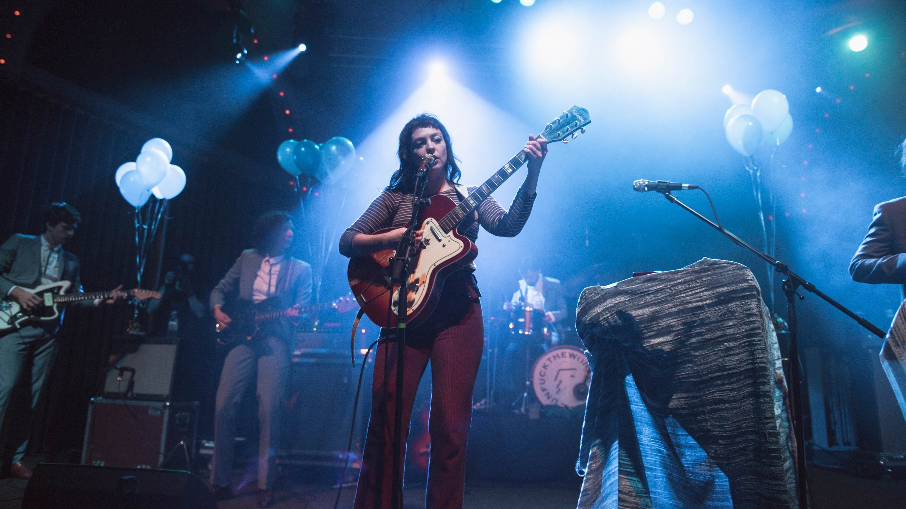 When Olsen’s band—dressed in matching powder-blue suits, on a stage decorated like a ‘50s country prom—kicked into “Shut Up Kiss Me,” the full-tilt guitar-rock love plea that electrifies last year’s acclaimed My Woman with shrieking, unforgettable romance, the audience’s innocent crush on Olsen turned pornographic. “I could take it down to the floor,” she sang, “you don’t have to feel it any more/A love so real that it can’t be ignored.” The real begging came after the last verse, when she ripped out a pained, growly soprano chorus of ohs. Olsen’s voice is more than beautiful, bending and snarling and opening and closing to be present with each phrase’s feeling and cadence. And hearing it in person is so much more than pleasant—it speaks and it pierces and it makes you think, Ouch.