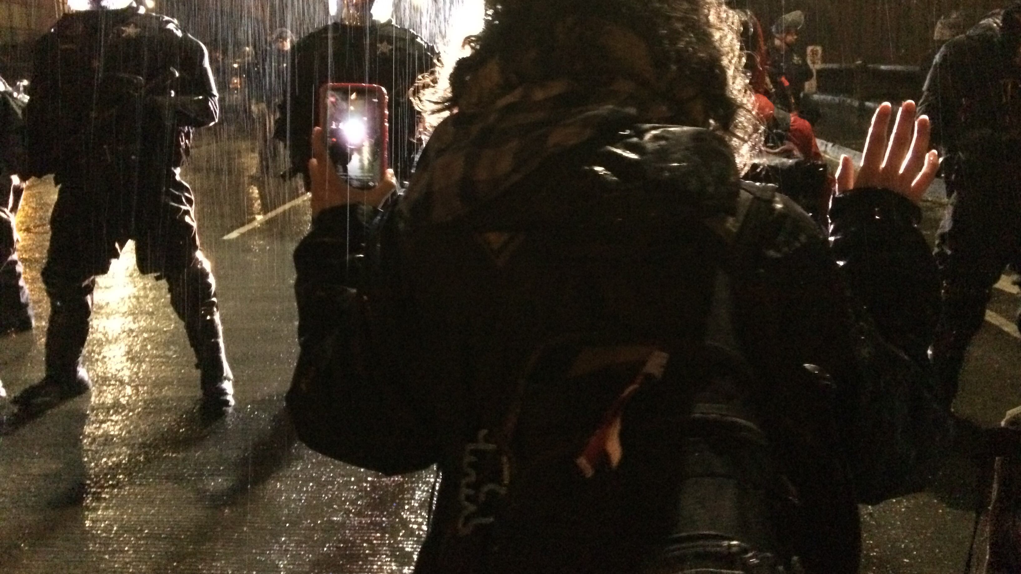 The deployment of tear gas was the final statement in a show of force by police under Mayor Ted Wheeler. Police blocked the city's bridges, and effectively shut down the anti-Trump march by 8:15 pm with pepper spray and sound grenades, also known as "flash-bangs."