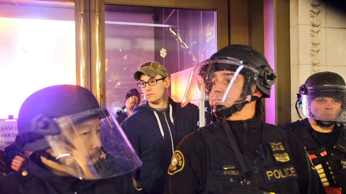 The incident occurred on a night of nationwide protests, and at least one shooting—in Seattle, outside a speech by right-wing agitator Milo Yiannopoulos.