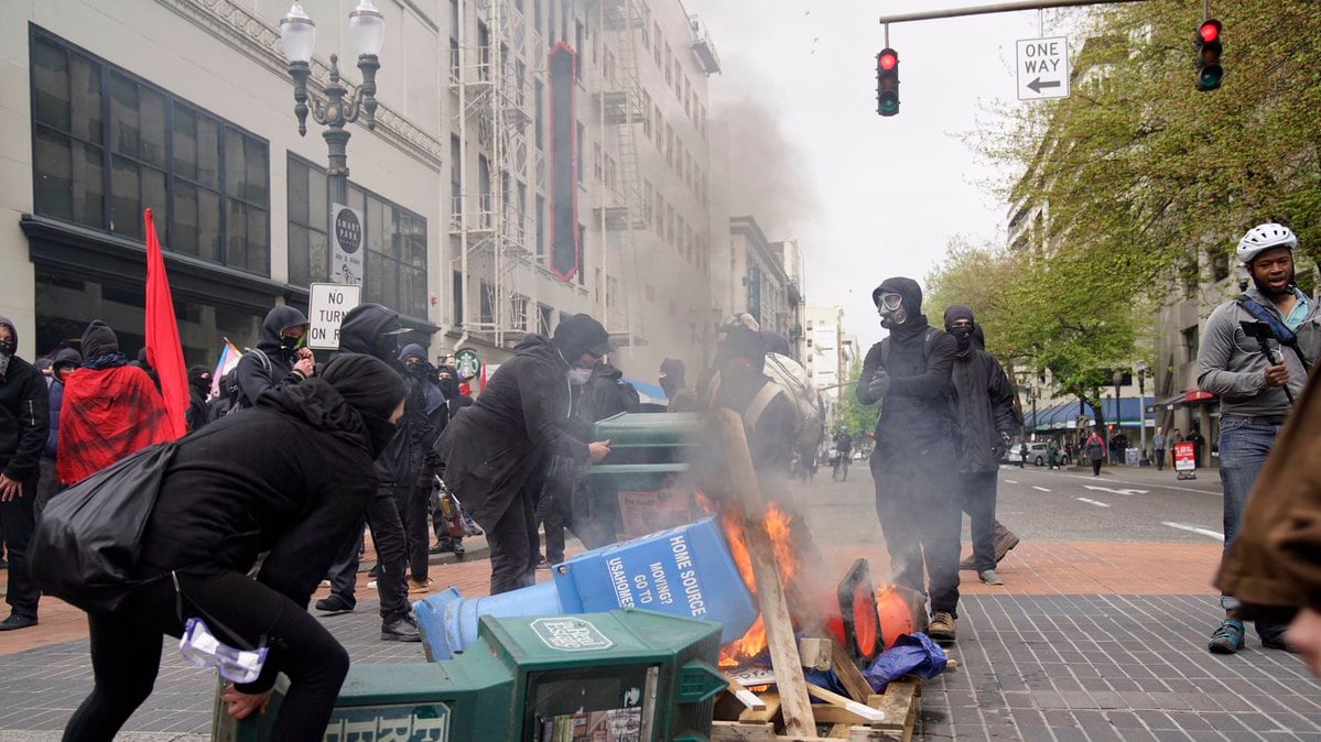 Portland's annual organized labor marches have also become a recurring excuse for confrontation between the heavily geared-up Police Bureau and masked anarchists known as the "Black Bloc," who this year dragged newspaper boxes onto the light-rail tracks to make a bonfire, and traded projectiles with riot police—Pepsi cans and smoke bombs going one direction, and noise grenades the other.