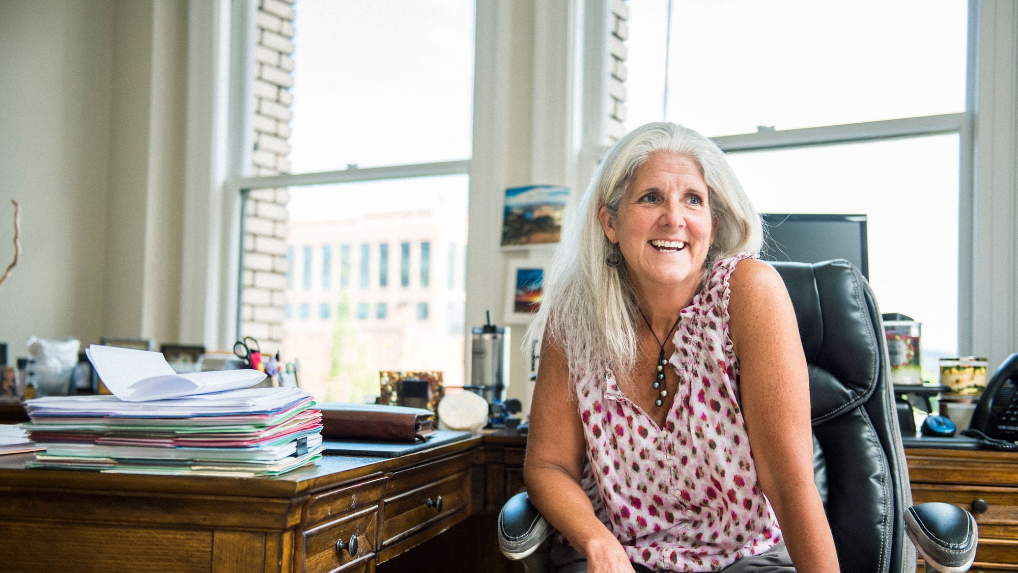 Bernard wears an ever-present smile beneath a shock of silver hair. But she's tough. When she lifted weights, she used to bench press 250 pounds. Then she took up running and exercised so hard she wore out a hip. After a surgical replacement, she was in the office the next day.