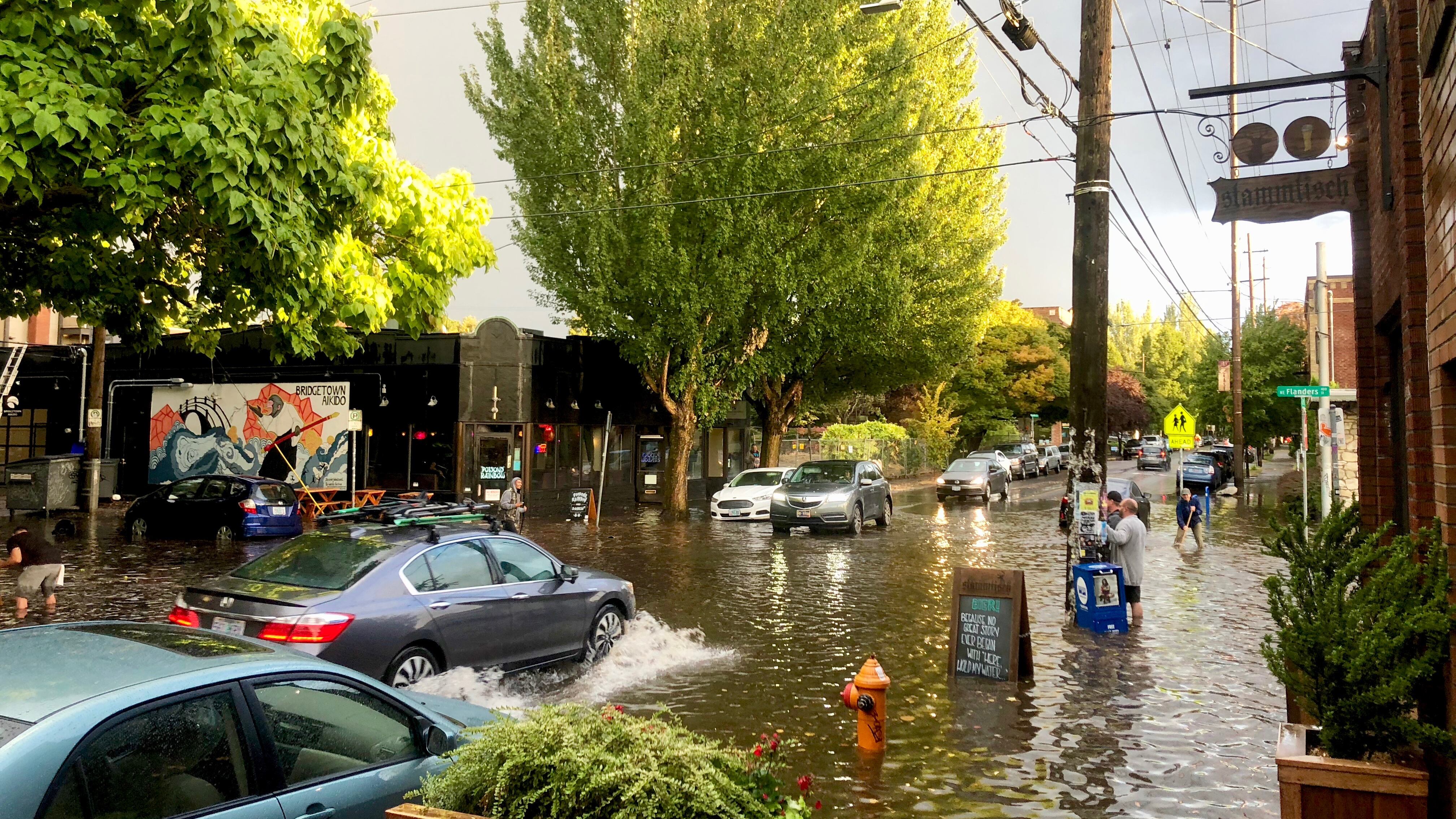 #PDXFlashFlood Small craft advisory at 24th and Couch. Multiple intersections around Laurelhurst are completely flooded. Use caution. #pdxtst #portland #pdx #kgwweather #FlashFlood #weather pic.twitter.com/Iuo3T2qGX0