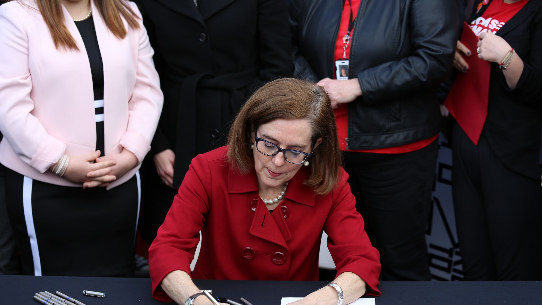 Oregon Gov. Kate Brown yesterday joined those protesters in a walk-out.