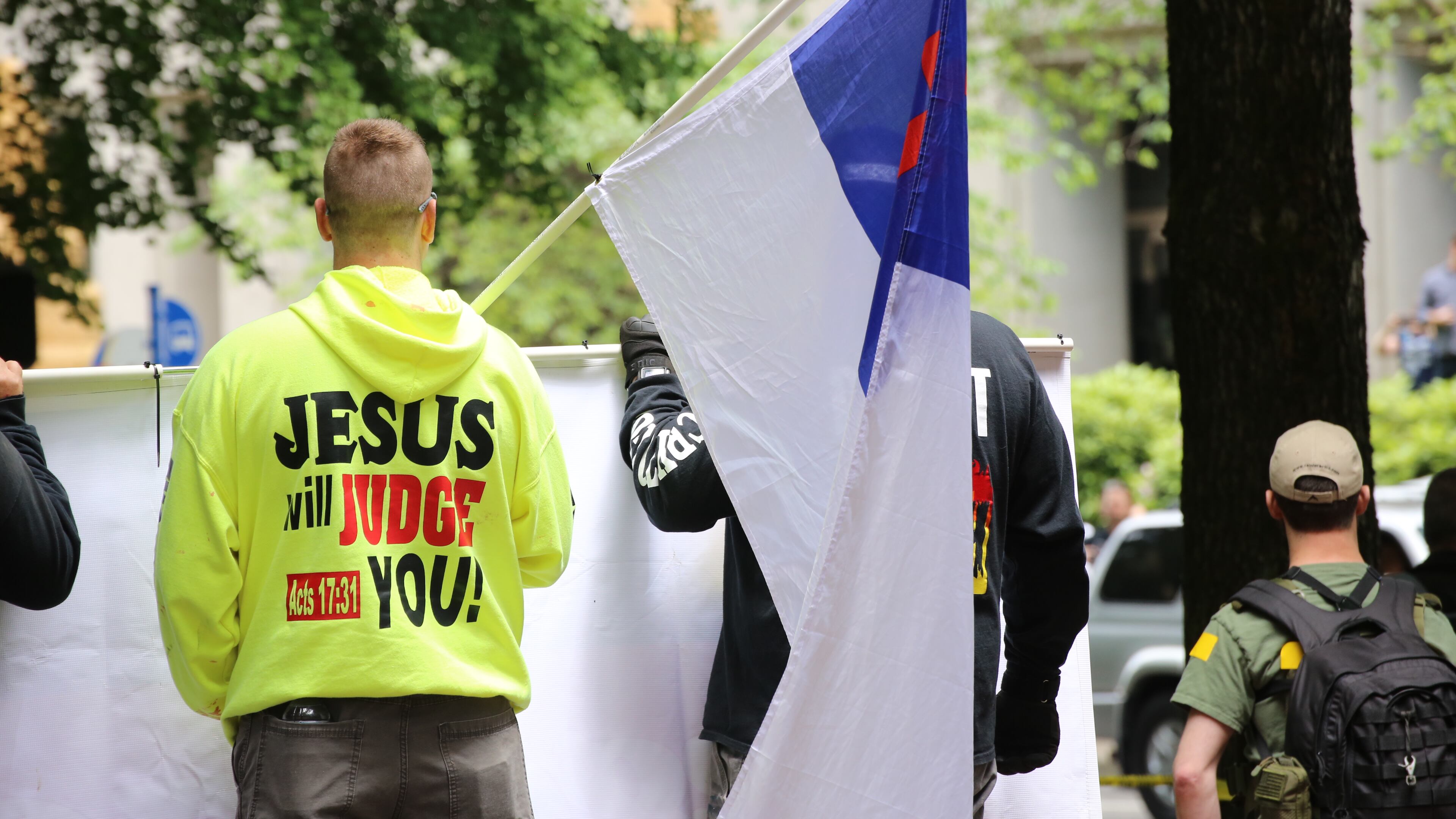 The neo-Nazi organizers frequently insult the less extreme members of the so-called Patriot movement, who often disavow explicit racism and white supremacy, and more commonly express xenophobic and anti-immigrant sentiments. They mock groups like Patriot Prayer for focusing on "free speech" over racist ideologies.
