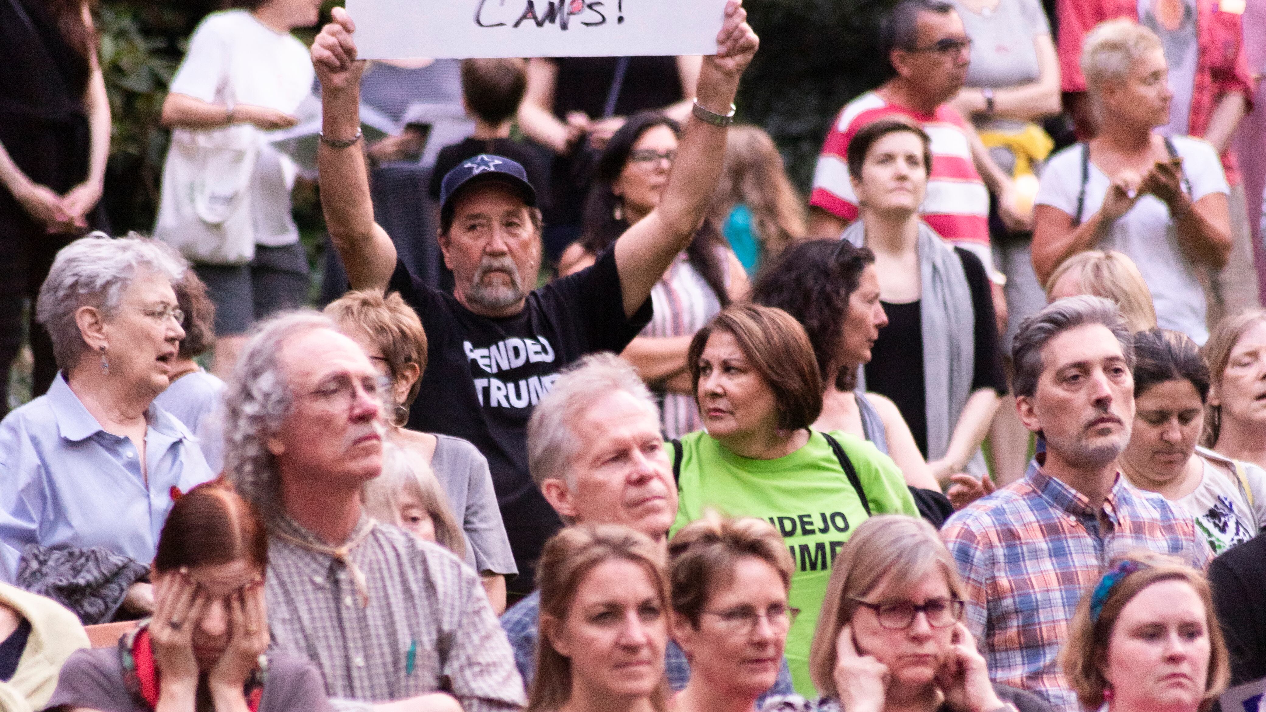 Some attendees held signs with handwritten messages that said: "Close the Camps" or "Impeachment Now."